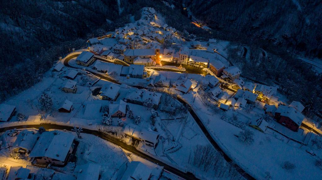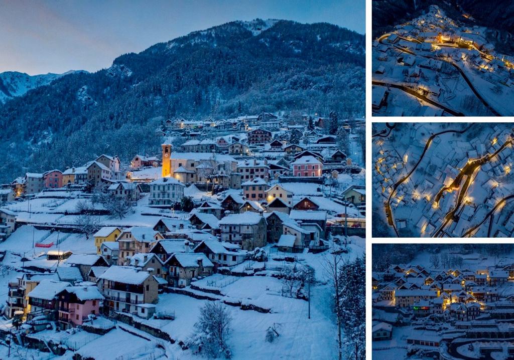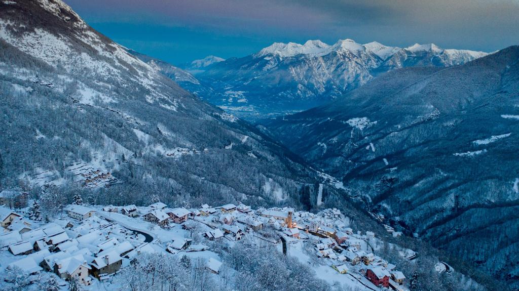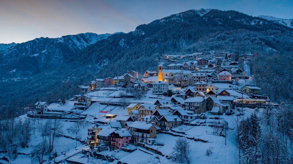 BOGNANCO - 07-01-2021 - Sono immagini che rimandano a paesaggi sognanti e sospesi nel tempo quelle che riprendono, in notturna, Bognanco e le sue frazioni coperte dalla neve e rivestite da una luce a tratti irreale. Immagini che fanno ispirano un rapporto uomo-natura armonico e in equilibrio. Quello che dovremmo tornare a cercare, ad ogni costo, in questo momento che apre nuovi capitoli alla Storia.
