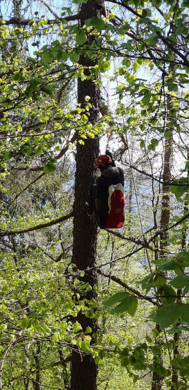 Il pilota del parapendio per motivi imprecisati ha urtato la cima di un albero subito dopo il decollo ed è rimasto appeso con la vela ad un’altezza di circa 20 metri.