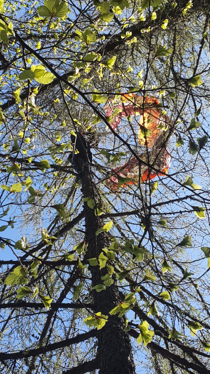 LUSENTINO-14-05-2021-- Stamane 9.50 circa la Sala Operativa del Comando VVF di Verbania è stata allettata a seguito di una segnalazione per un parapendio rimasto impigliato ai rami di un’albero d’alto fusto in località alpe Lusentino nel comune di Domodossola.