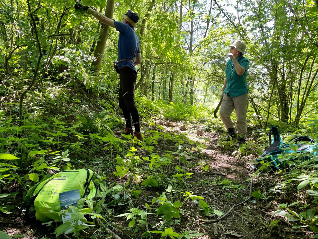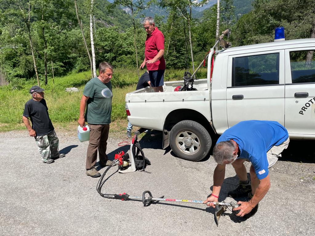 Per pulire il sentiero ci vogliono conoscenza del terreno e …forza di braccia! Siccome in Svizzera inizia la stagione delle ferie, questa settimana ben 15 soci della “Associazione bernese Amici dei sentieri Ossolani” sono andati a dar man forte ai colleghi del sud con pala, picozza e tagliaerba.