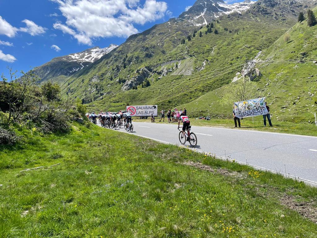 Associazione grigionese per la protezione del territorio dai grandi predatori e Komitee Pro alpine Kulturlandschaft. Prosegue la nota: "Lungo il percorso nei cantoni Ticino, Vallese, Uri e Grigioni abbiamo reso attenti sulla nostra preoccupazione con lo slogan 'Save the Alps - Retten wir die Alpen - Salvain las Alps - Salviamo le Alpi' e con striscioni.