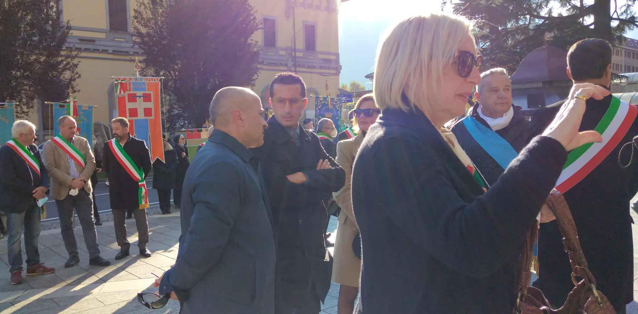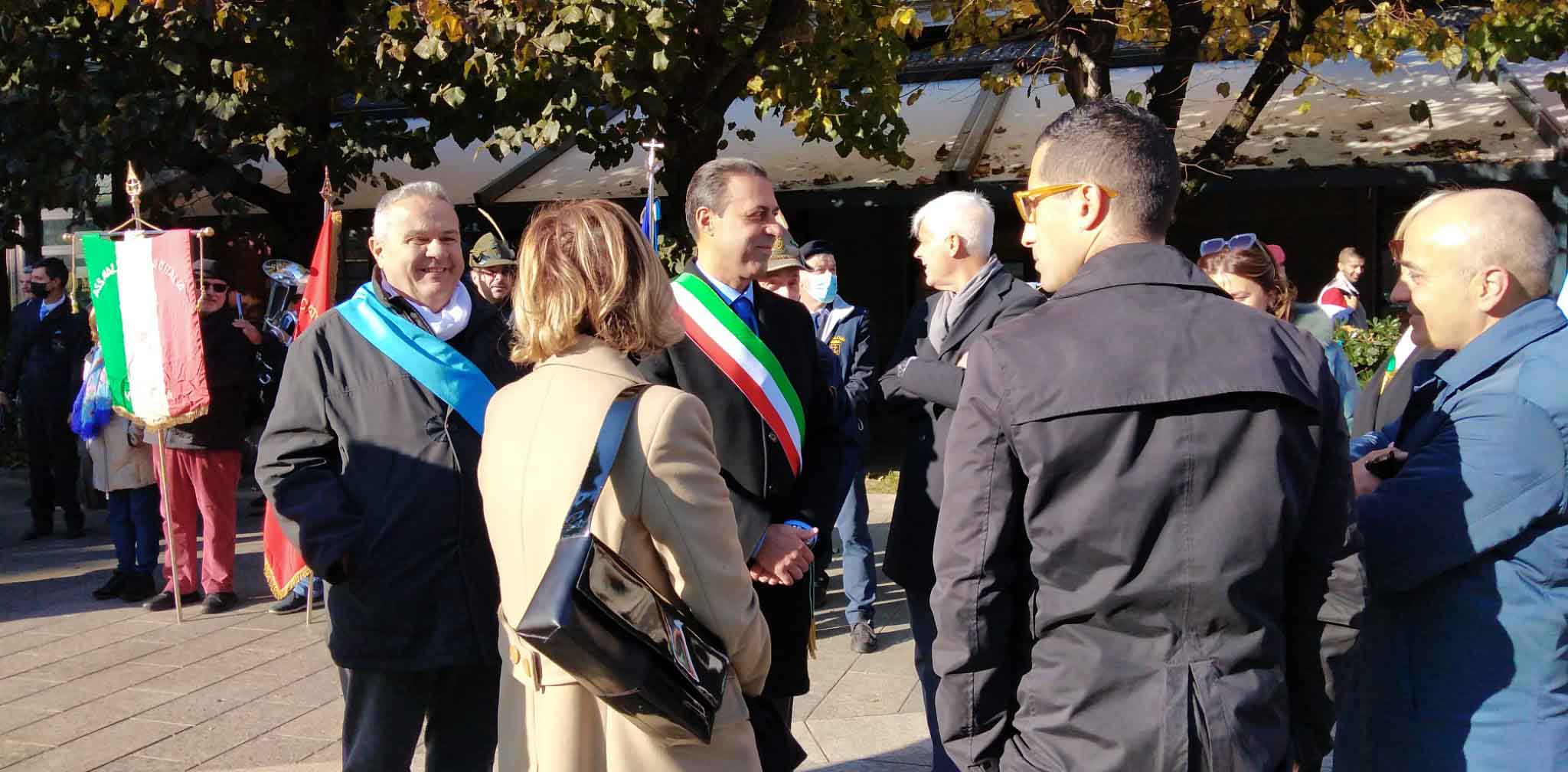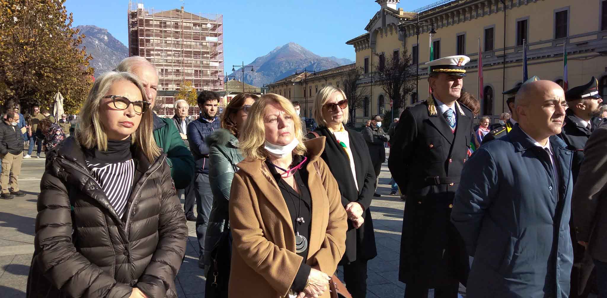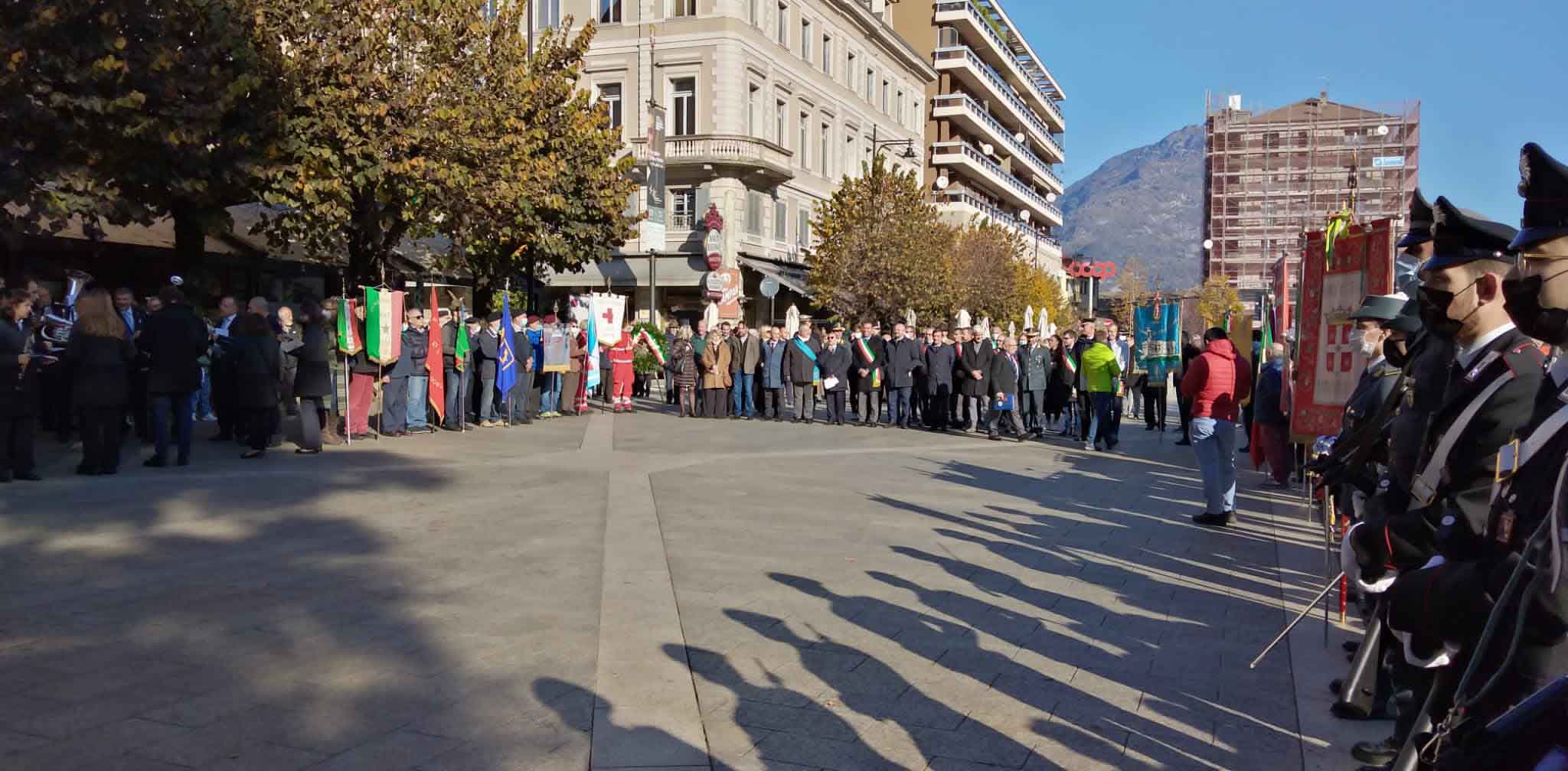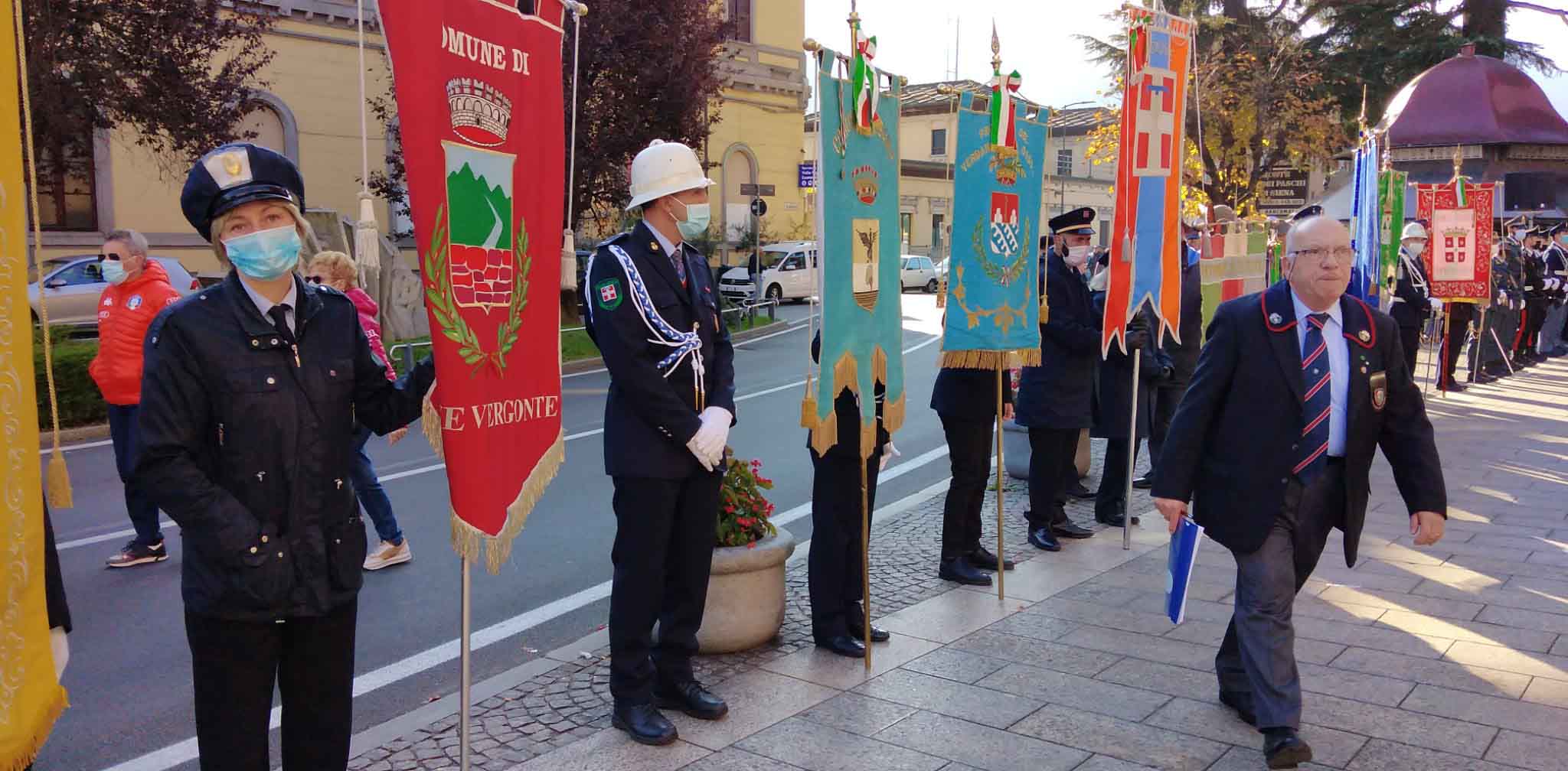 DOMODOSSOLA- 24-110-2021-- Cerimonia di celebrazione del 77° anniversario della Repubblica partigiana dell’Ossola presso il monumento alla Resistenza di piazza Matteotti con il ricevimento e gli onori al gonfalone della città, decorata con medaglia d’oro al valor militare. Dopo l’alzabandiera la deposizione della corona d’alloro