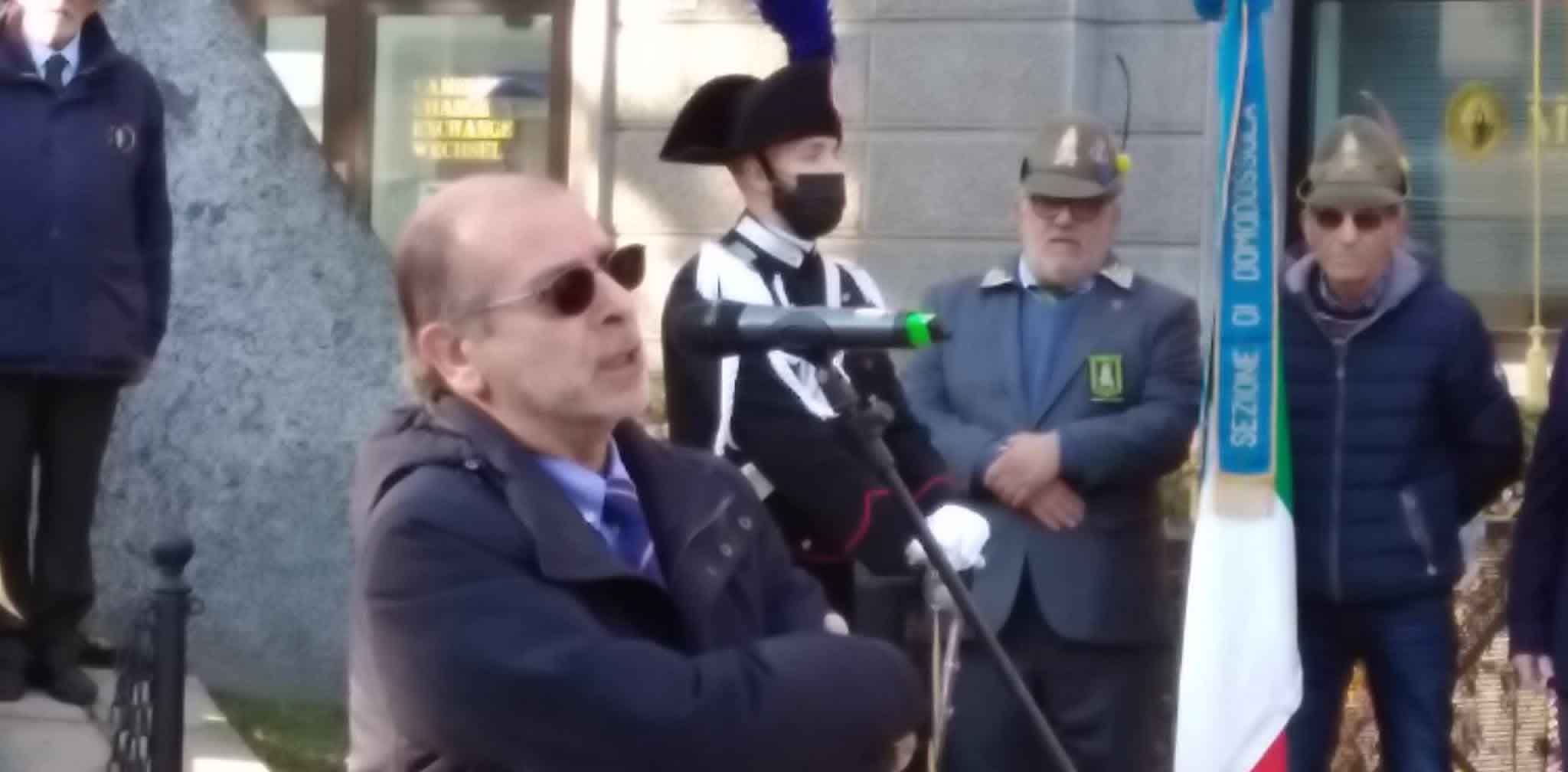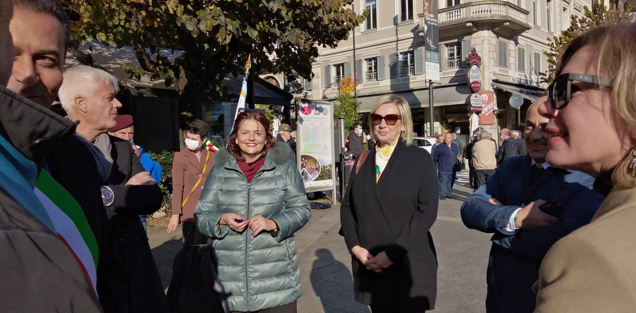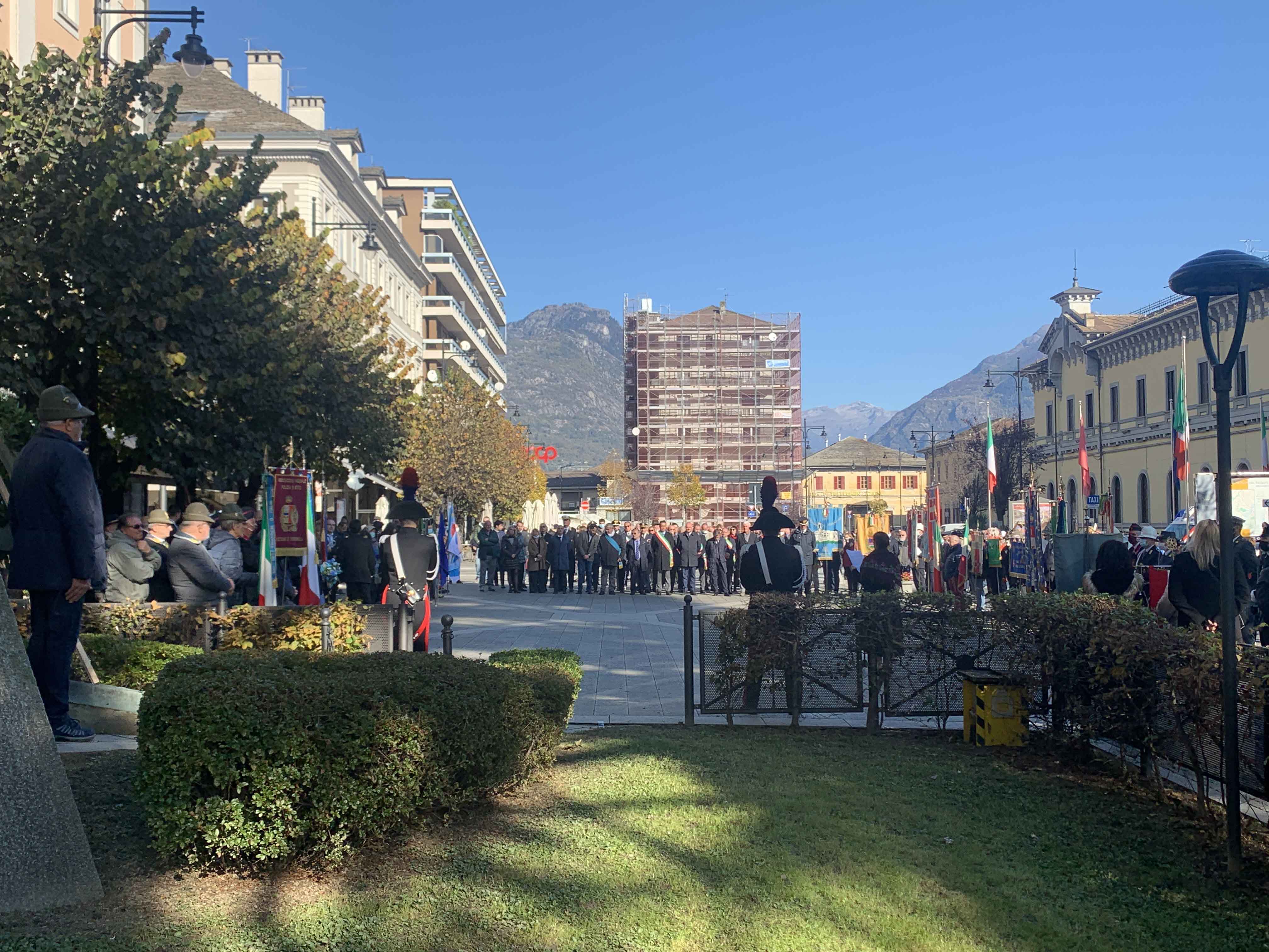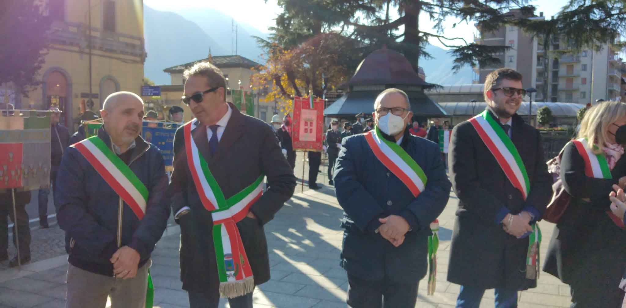 DOMODOSSOLA- 24-110-2021-- Cerimonia di celebrazione del 77° anniversario della Repubblica partigiana dell’Ossola presso il monumento alla Resistenza di piazza Matteotti con il ricevimento e gli onori al gonfalone della città, decorata con medaglia d’oro al valor militare. Dopo l’alzabandiera la deposizione della corona d’alloro