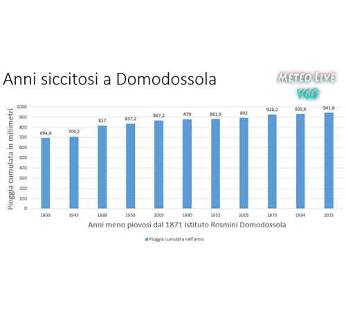 due mesi consecutivi senza precipitazioni. Ieri, 2 gennaio 2015 si è interrotto il lungo periodo siccitoso per la città di Domodossola. Poche gocce, nulla più! Come poche gocce erano cadute lo scorso 29 ottobre (0.6 mm), giorno dell’ultima precipitazione. Abbiamo intervistato Luca Sergio, di MeteoLiveVco che offre un’approfondita e tecnica analisi dei fatti: “Non era mai accaduto che a Domodossola passassero due mesi consecutivi senza un solo millimetro di pioggia, questo è un fatto storico.! Grazie ai rilevamenti fatti dall’Istituto Rosmini possediamo dati molto precisi che sono disponibili fin dal 1871. Un dicembre con zero precipitazioni a Domodossola, così come in tutto il Vco, era accaduto solamente altre quattro volte: nel 1980, nel 1974, nel 1898 e nel 1873. Novembre 2015 è trascorso senza precipitazioni, fatto mai accaduto a Domodossola, dal 1871. La città ha vissuto una vera siccità. Battuto l’anno 1980 con 10 mm a novembre e 0 mm a dicembre. L’anno 2015 ha chiuso con 941,8 millimetri di pioggia complessiva e pertanto si piazza in undicesima posizione. L’anno più secco fu il 1893 caratterizzato da un primo semestre assai secco, nella primavera non si superarono i 100 mm, agosto con solo 4 mm e l’anno si chiuse con ottobre e novembre insolitamente scarsi di precipitazioni». Attualmente MeteoLiveVco, in collaborazione con il CNR-ISE Verbania, ha installato una propria stazione meteorologica alla Torre Mattarella. Luca Sergio conclude: «La siccità è causata da anomalie oceaniche in grado di modificare la circolazione atmosferica a livello globale, vedi El Niño 2015. Tali anomalie modificano il clima, normalmente piovoso primaverile e autunnale, inibendo gli scambi meridiani di calore. Possiamo però osservare che su undici anni siccitosi in totale la loro suddivisione è piuttosto uniforme: infatti ne troviamo quattro negli anni ‘800; quattro nel ‘900 e tre negli anni 2000”.