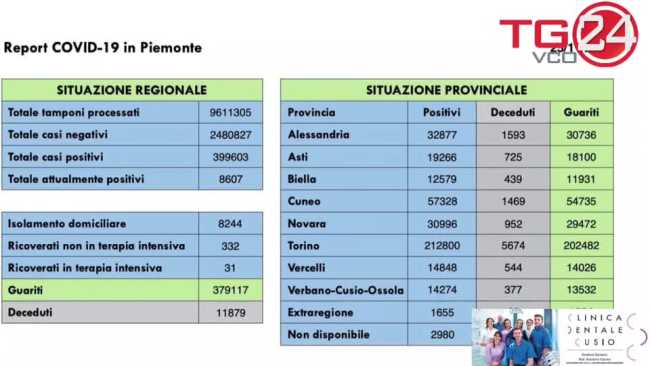 COVID, IN PIEMONTE 780 NUOVI CASI. RICOVERI IN AUMENTO