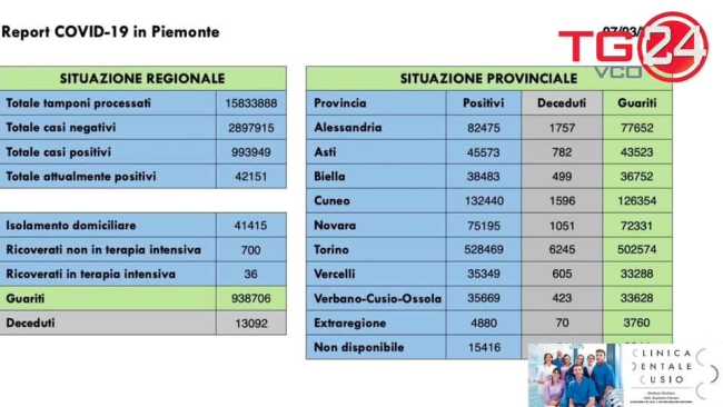 COVID: 1.537 NUOVI CASI IN PIEMONTE