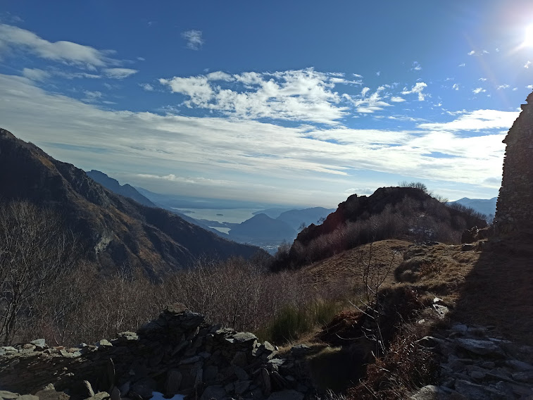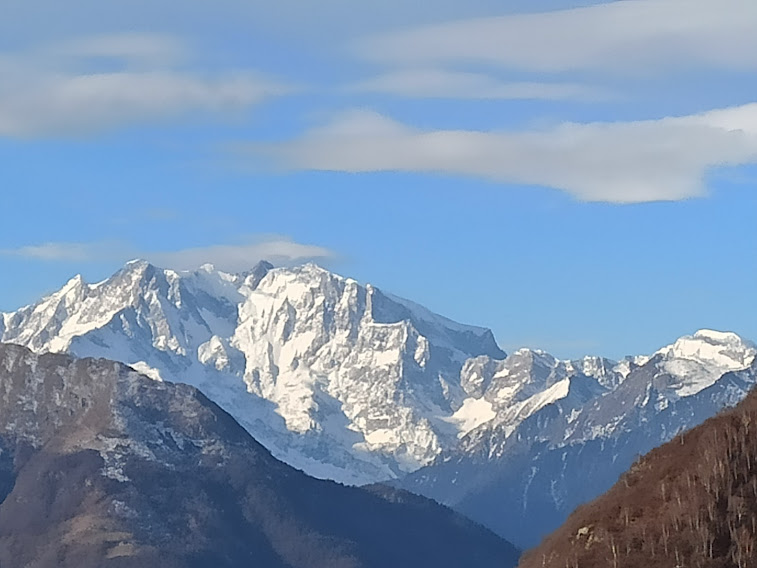 PREMOSELLO- 13-03-2022-- Le aspre montagne che dominano a nord Premosello Chiovenda costituiscono uno degli ingressi alla ancor più aspra Val Grande. Salendo lungo questi ripidi sentieri si aprono da est a ovest panorami impensabili per chi resta a passare il proprio tempo libero nei bar del fondovalle. Il gruppo del Rosa da qui offre una delle sue versioni più spettacolari. Come siamo fortunati noi che viviamo in questo meraviglioso territorio ed amiamo la montagna!