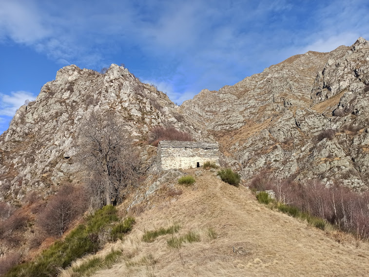 Il cielo è un po’ velato, ma è l’ennesima giornata bellissima, alla faccia della neve. In auto superiamo Colloro e parcheggiamo vicino alle opere di presa della centrale idroelettrica della Pro Colloro, a quota 600 circa. Qui la strada asfaltata si divide fra quella per l’Alpe Lut e quella per Capraga. Diretti verso Lut, superiamo il Rio del Ponte e imbocchiamo quasi subito il sentiero sulla sinistra, che sarà sempre evidente.