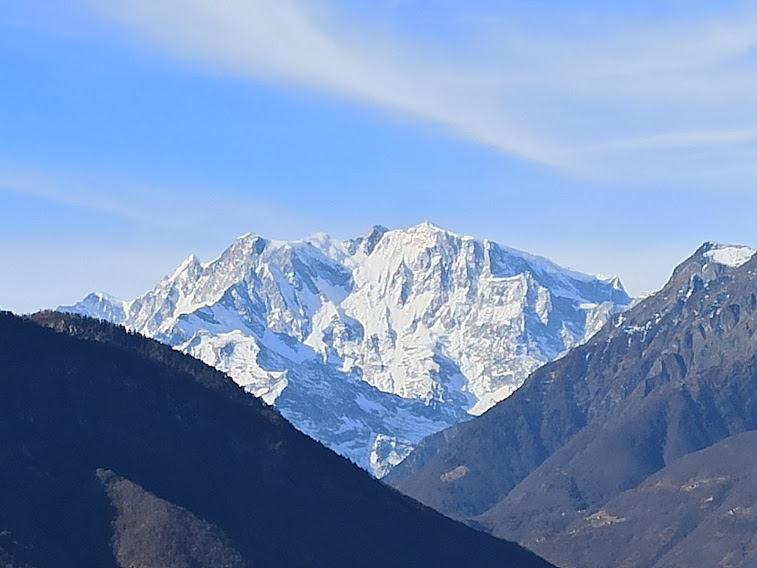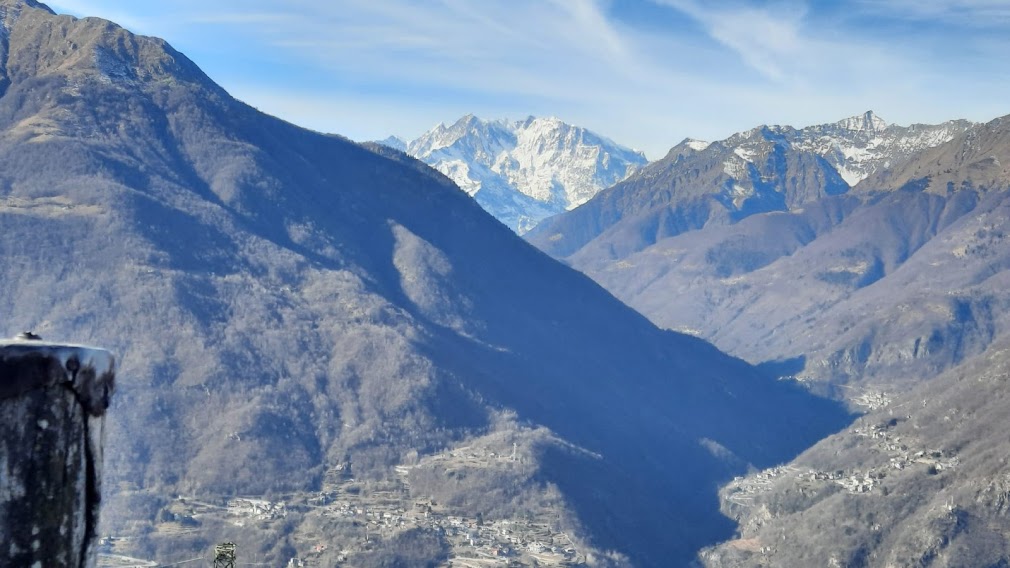 VOGOGNA- 10-04-2022-- Seppure a bassa quota, l’Alpe Marona richiede una certa fatica per essere raggiunta dal fondovalle senza ausilio di auto, ma offre un panorama degno di un’alta vetta, con il Monte Rosa in primo piano. Guardando da Vogogna verso l’alto, non diresti che lì esista questo angolo di paradiso.