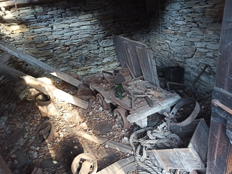 Qui troviamo muri a secco mastodontici, di cui uno ancora in piedi, e, più in alto, delle baite sommerse dai rovi. All’interno di una di queste e all’esterno ci sono ancora attrezzi da lavoro e macchinari della ex cava sovrastante. Poco sopra quota 800 incontriamo un alpeggio e, dopo un’ora dal Rio Dresio, siamo all’Alpe Marona, 880.