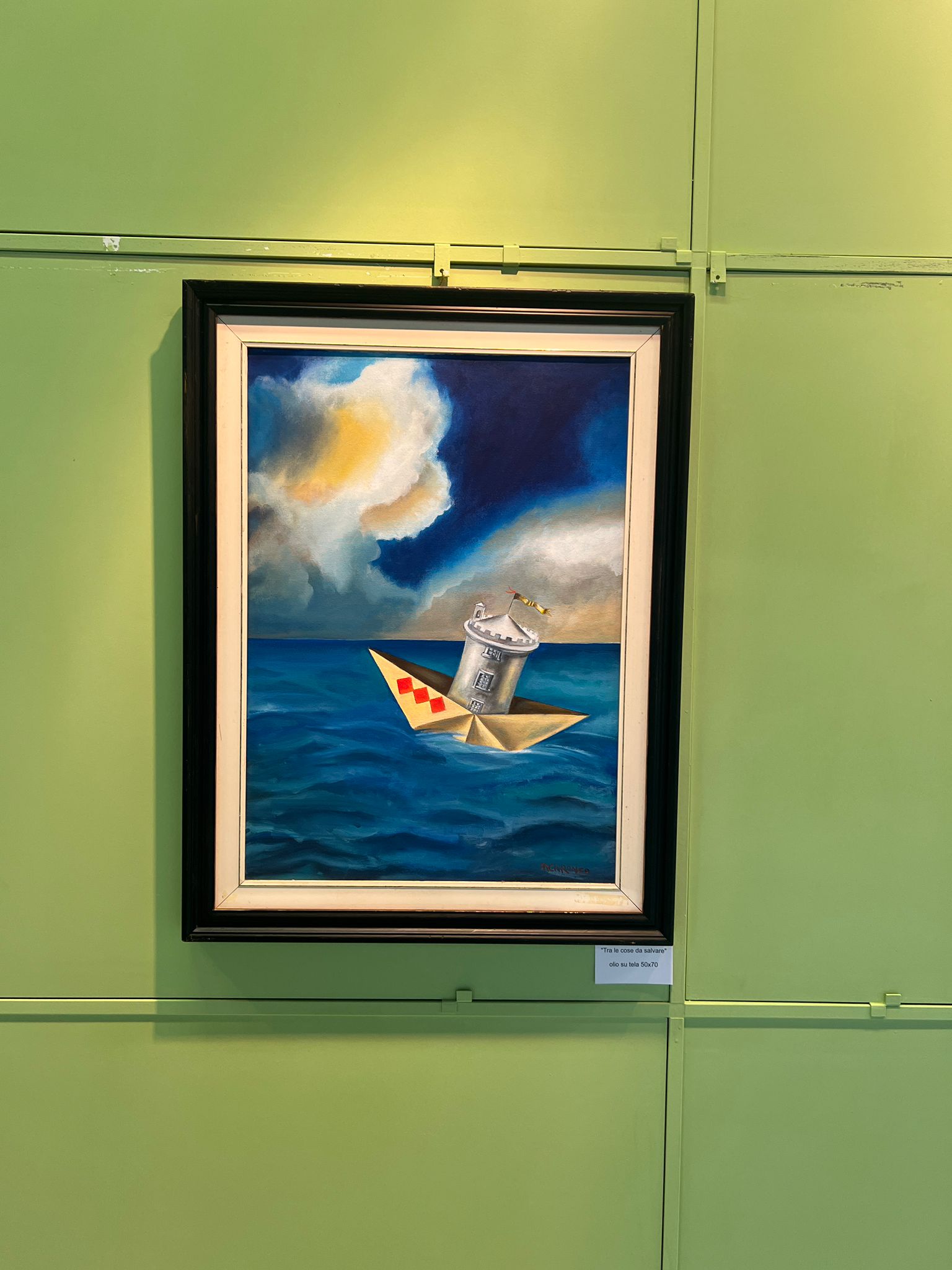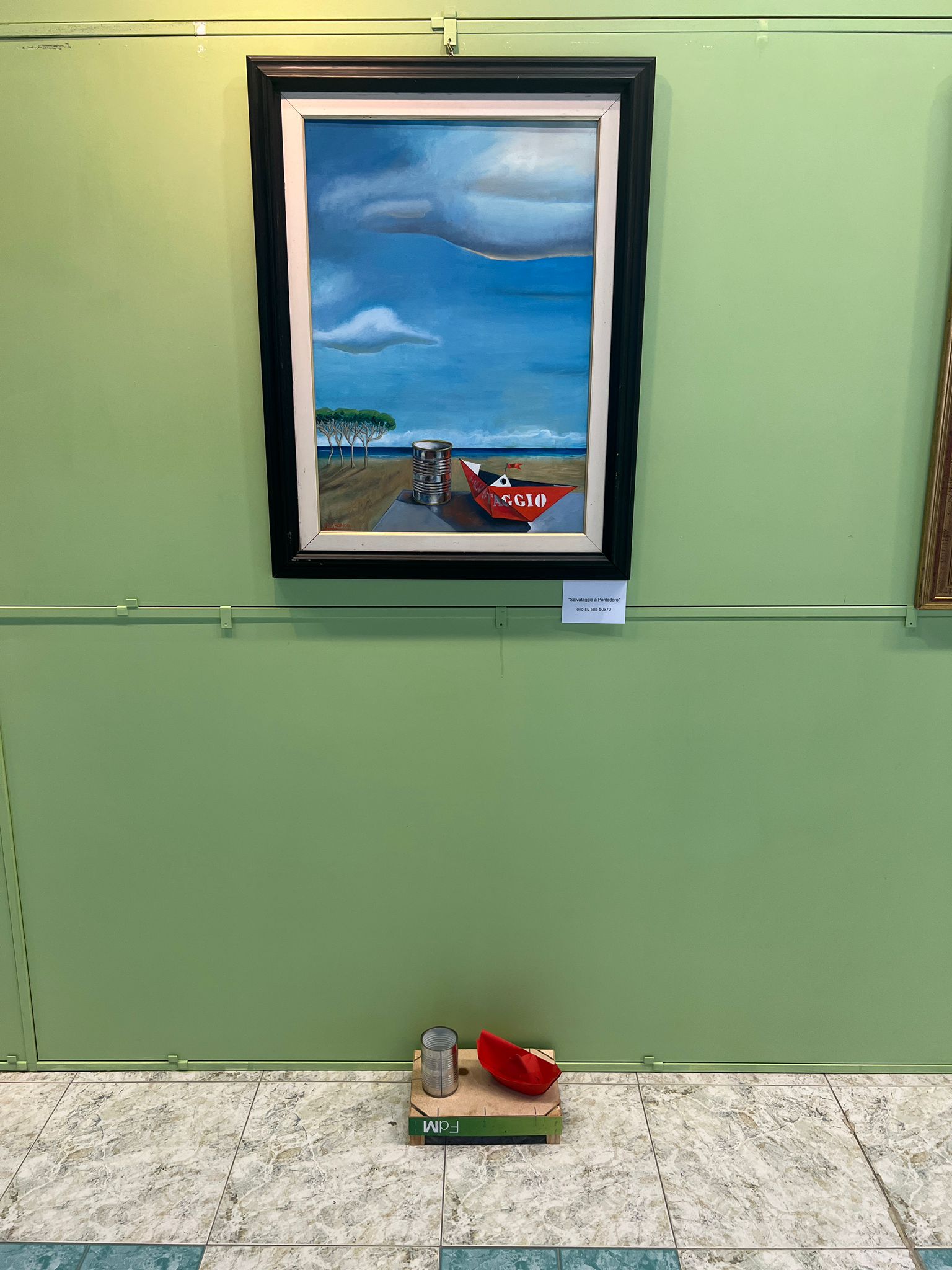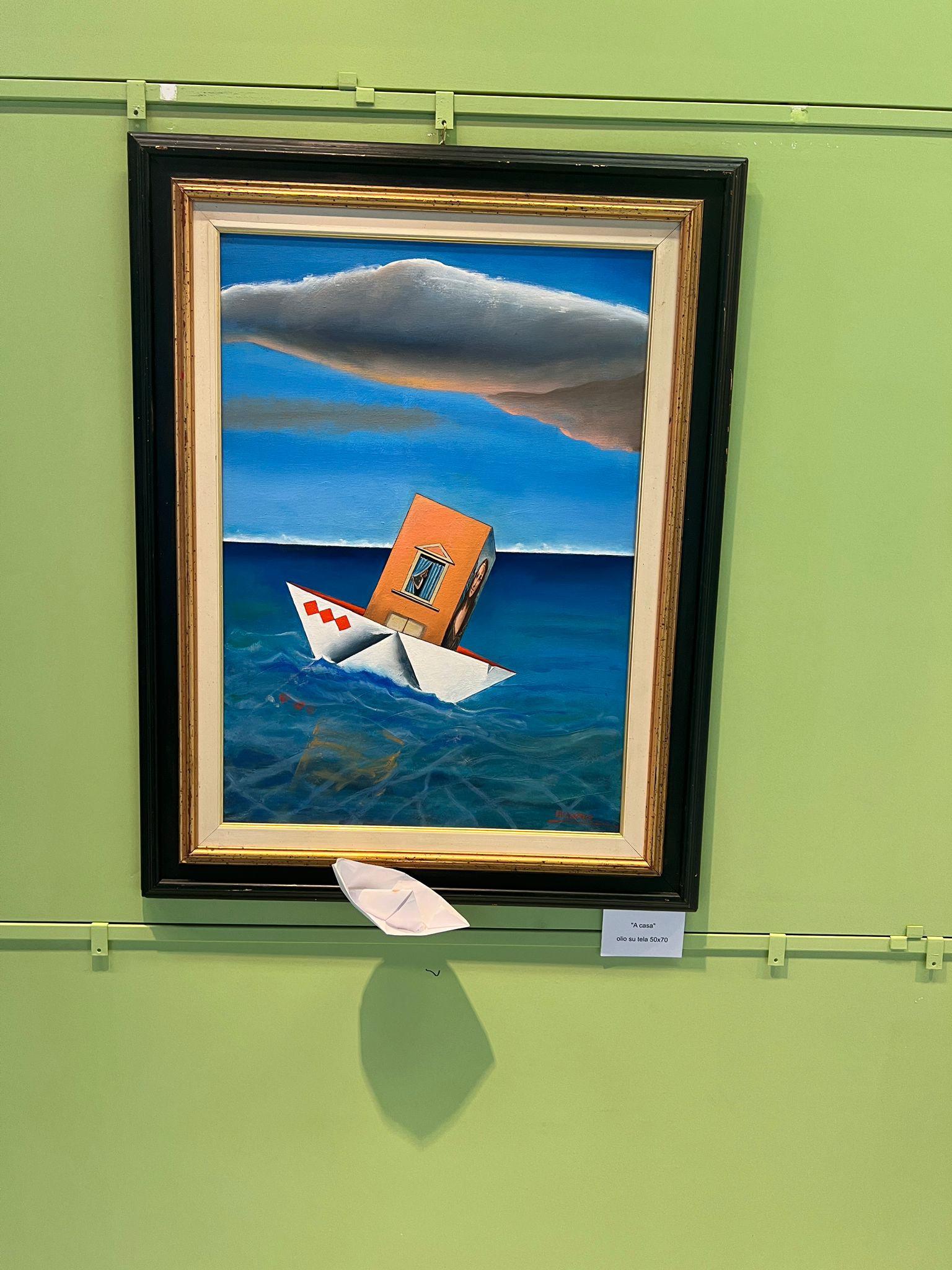 VILLADOSSOLA - 23-9-2023 -- Ultimo week end per poter visitare l'interessante mostra d'arte di Angela Betta Casale e Paca Ronco dal titolo Percorsi. Una mostra dove si uniscono due generi di pittura molto innovativi e particolari: quello della torinese, in cui prevalgono i mix di varie tecniche pittoriche, e quello della pittrice ossolana, dallo stile "metafisico". Proprio le opere di Paca Ronco colpiscono particolarmente per la loro immediatezza, con opere che "escono" dalla cornice per entrare direttamente in sala. Ad esempio il filo rosso del ciclo di Arianna, dipinto e poi fisicamente presente in sala, o gli oggetti raffigurati nell'interessante ciclo delle barche di carta.