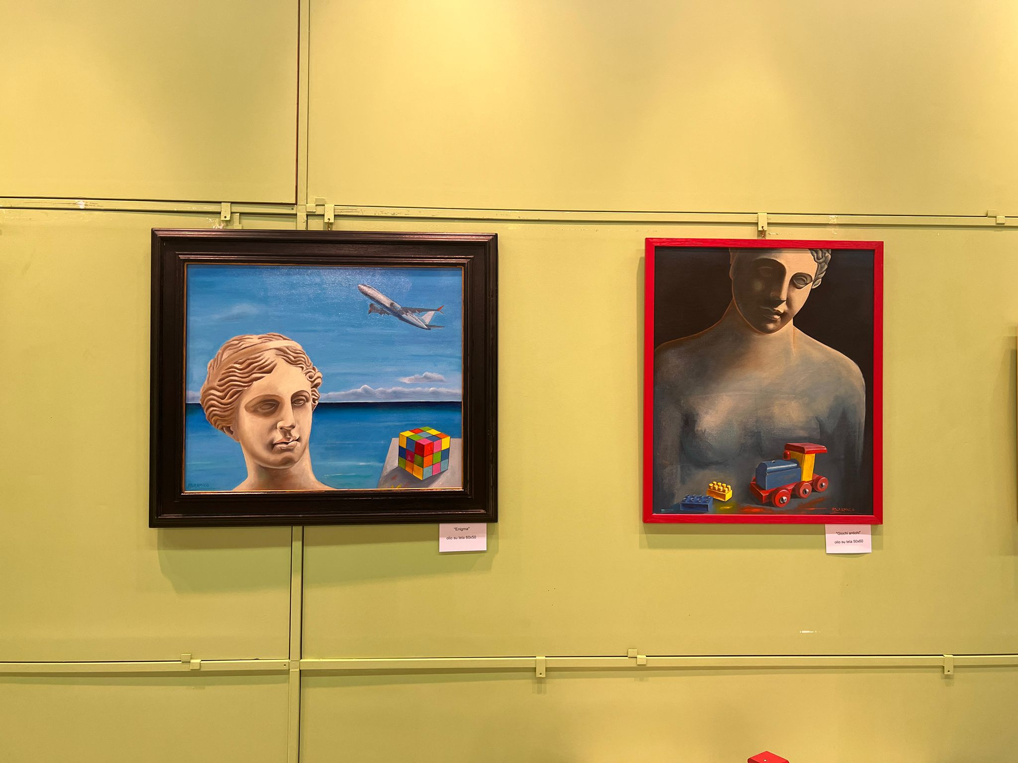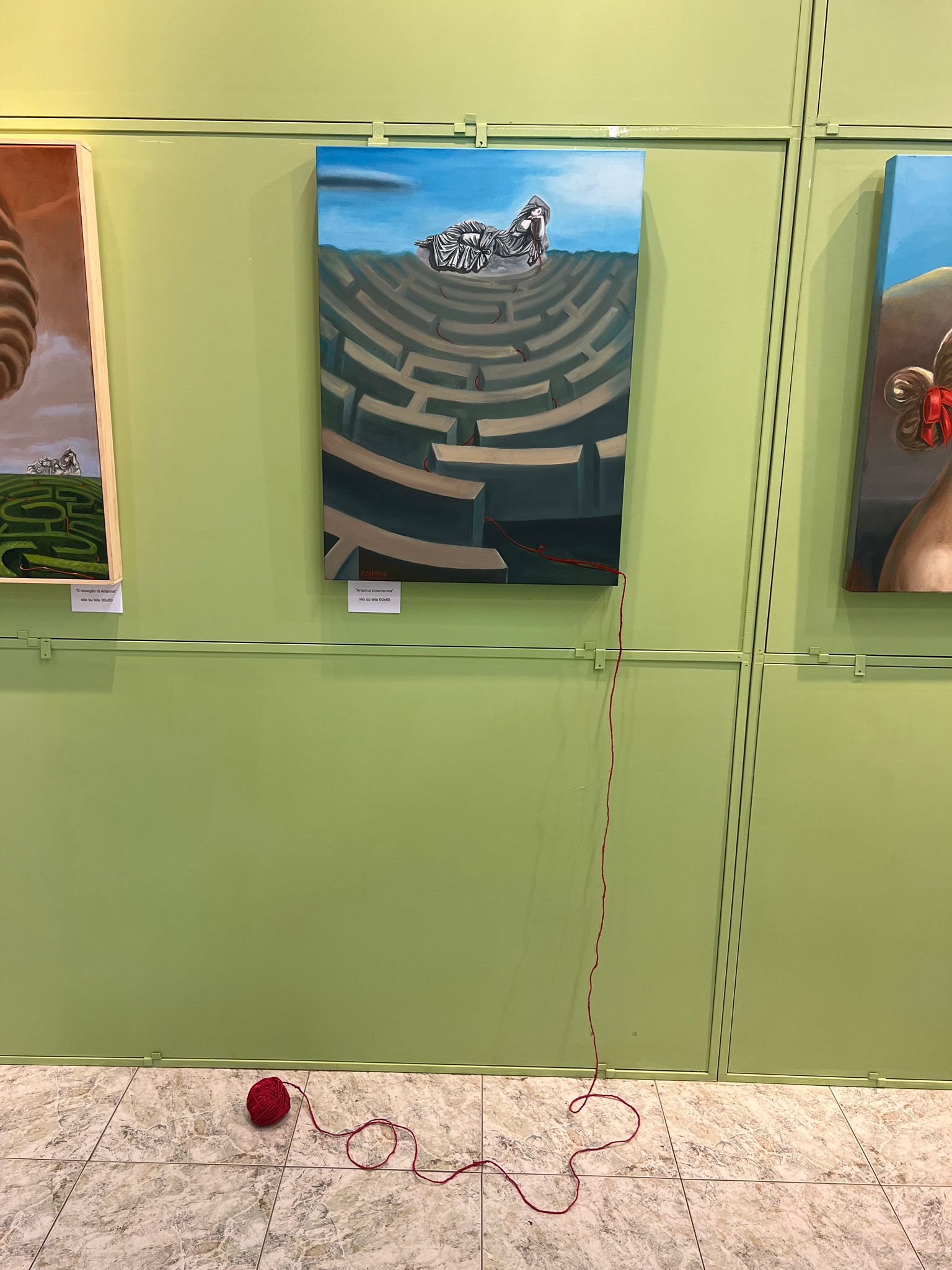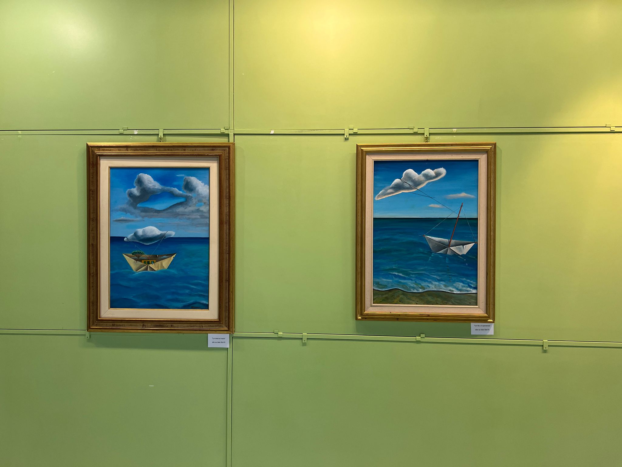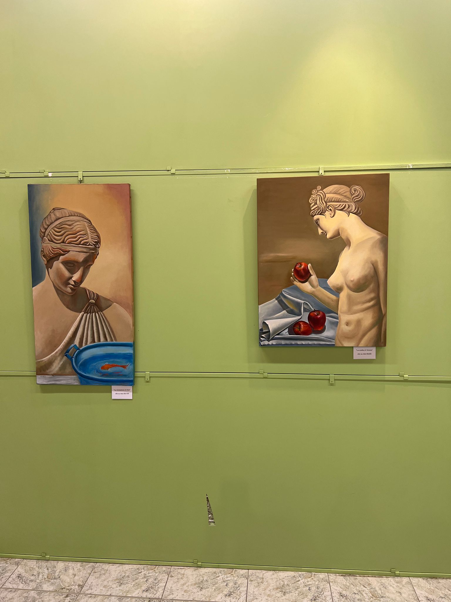 VILLADOSSOLA - 23-9-2023 -- Ultimo week end per poter visitare l'interessante mostra d'arte di Angela Betta Casale e Paca Ronco dal titolo Percorsi. Una mostra dove si uniscono due generi di pittura molto innovativi e particolari: quello della torinese, in cui prevalgono i mix di varie tecniche pittoriche, e quello della pittrice ossolana, dallo stile "metafisico". Proprio le opere di Paca Ronco colpiscono particolarmente per la loro immediatezza, con opere che "escono" dalla cornice per entrare direttamente in sala. Ad esempio il filo rosso del ciclo di Arianna, dipinto e poi fisicamente presente in sala, o gli oggetti raffigurati nell'interessante ciclo delle barche di carta.
