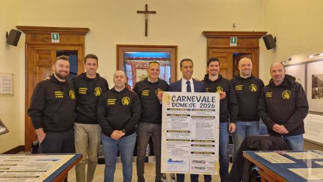 DOMODOSSOLA - 26-1-2026 -- Presentata l'edizione 2026 del Carnevale di Domodossola. In sala consigliare, il sindaco Lucio Pizzi ha accolto il Comitato Pulenta e Sciriuii per la conferenza stampa di presentazione. Una novità importante è la convenzione triennale del Comune domese con il Comitato. «È un riconoscimento al lavoro di questi ragazzi – ha detto il sindaco Lucio pizzi –. Si tratta di un contributo annuo di 7.500 euro più una serie di azioni dell’amministrazione a supporto dell’evento». Le parole di Andrea Truscello, vicepresidente del Comitato Pulenta e Sciriuii: «Il carnevale inizia venerdì 6 febbraio alle 21 quando parteciperemo alla Fabbrica di Villadossola al matrimonio di Zecra e Arlori. Parteciperanno alla nostra sfilata di domenica 15 febbraio il carnevale di Cannobio e Montecrestese. Sabato 7 febbraio tornano i Pampers per la nostra apertura». Giovedì 5 febbraio uscirà il giornale gratuito “Ul Trusur”, in edicola e nei bar di Domodossola. Sabato 7 febbraio alle 12 arrivo in piazza Matteotti dei gruppi svizzeri: Ganter + Brätscher di Ried Brig Termen, Rafjifäger di Briga e i Pampers di Briga. Alle 16.30 la sfilata da piazza Matteotti del comitato, della Corte di Mattarella, dei vari gruppi, per le vie del centro e la consegna delle chiavi della città al Togn e alla Cia. Domenica 15 febbraio alle 11 in piazza Mercato distribuzione polenta e salamini e alle 14.30 grande sfilata e matrimonio di Togn e Cia in Piazza Repubblica dell'Ossola. Si segnala lunedì 16 febbraio alle 19 in oratorio la cena con Togn e Cia. «L’impegno dei volontari non manca siamo quasi 150 ma abbiamo sempre bisogno di persone» ha sottolineato il presidente del Comitato Pulenta e Sciriuii, Roberto Ghignone.