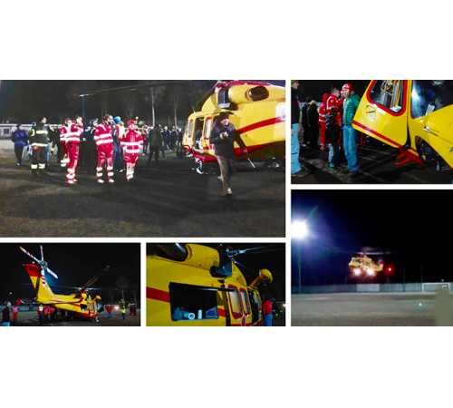 dovuto ad una deviazione al Sestriere per recuperare un ferito e portarlo in ospedale al Regina Margherita a Torino, è atterrato presso la nuova base operativa al campo sportivo Nosere in Domodossola, provvisoriamente messa a disposizione, l'elicottero del Servizio HEMS 118, l'unico del Piemonte abilitato al volo notturno. Presenti diversi esponenti dei reparti militari e della Croce Rossa domesi, e l'assessore Franco Falciola.
