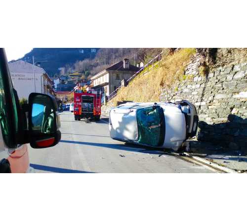 nel primo pomeriggio, dove un'utilitaria guidata da una giovane si è prima scontrata con un furgone e poi ribaltata. Fortunatamente non si è fatta nessuna ferita.