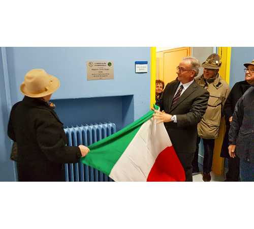 Gli arredi offerti dal Gruppo Alpini di Domodossola constano in tre scaffali, biblioteca, tavolo, sedie e televisore Philips. Presenti il consiglio del gruppo domese dell'ANA, la dottoressa Moschella, il signor Giorgio Goggio figlio di Cesare, Fabio Basta, in rappresentanza del comune, Giovanni Grossi per la sezione e la madrina degli Alpini domesi, Franca Sciolla.