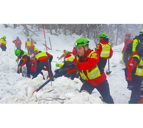 In particolare, il campo di operazione dell’Hotel Rigopiano è stato sottoposto a una nuova tipologia di intervento nel tentativo di individuare nuovi locali rimasti intatti. “ Oggi - come ha affermato Matteo Gasparini, Delegato dell’Ossola e nuovo referente del gruppo piemontese in Abruzzo - stiamo cercando di attaccare i muri perimetrali dell’albergo nel tentativo di penetrare le spesse pareti di cemento armato dietro cui potrebbero celarsi eventuali superstiti. Con la dotazione di speleologi del Cnsas, basterebbe trovare dei varchi anche ridotti per consentire l’esplorazione di nuove porzioni dell’hotel. Si tratta di un lavoro di strategia reso anche necessario dal peggioramento delle condizioni meteorologiche visto che dopo le nevicate della notte, ha continuato a cadere neve mista a pioggia per tutto il giorno”.