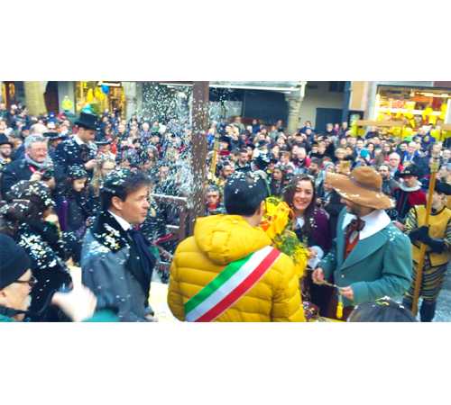 il Carnevale Domese 2017 con qualche novità, a partire dagli addobbi che colorano di giallo la città ossolana, le molte vetrine di negozi allestite a tema con gli immancabili palloncini gialli e una mostra in piazza Mercato dedicata alla storia del Carnevale domese. Come da tradizione si é svolta la sfilata da piazza Matteotti della corte di Mattarella, sulle note del Civico Corpo Musicale di Domodossola e accompagnati dal Comitato Carnevale di Villadossola. La consegna delle chiavi della città al Togn e alla Cia, quest'anno impersonati da Eugenio Pairazzi e Roberta Sottini, è avvenuta sul palco allestito in piazza Mercato, anziché all'interno del municipio, come avveniva nelle passate edizioni " per coinvolgere ancora di più la cittadinanza" ha precisato, il sindaco Lucio Pizzi. I ragazzi del Comitato hanno poi distribuito ai numerosi presenti degli assaggi gratuiti di polenta, piatto che non può mai mancare durante questa manifestazione. Ad allietare ancora di più la giornata, l'esibizione del gruppo Sbandieratori e Musici di San Damiano d'Asti. La festa prosegue questa sera con il " Carnival Circus" presso il bar Boss, spettacolo con giocolieri e sputafuoco.