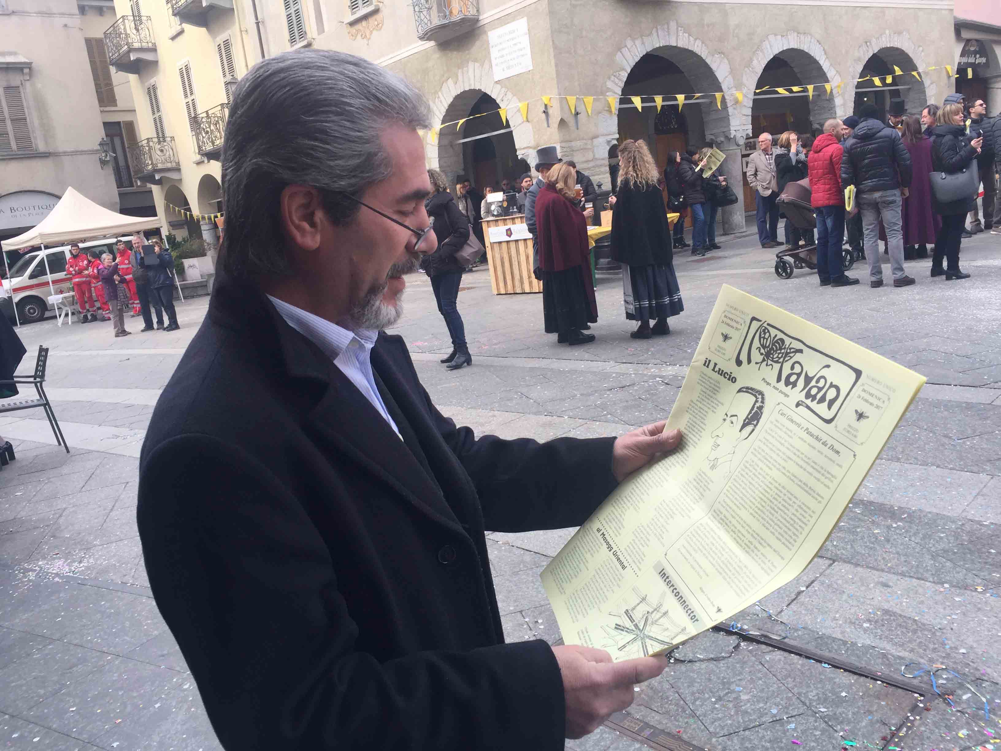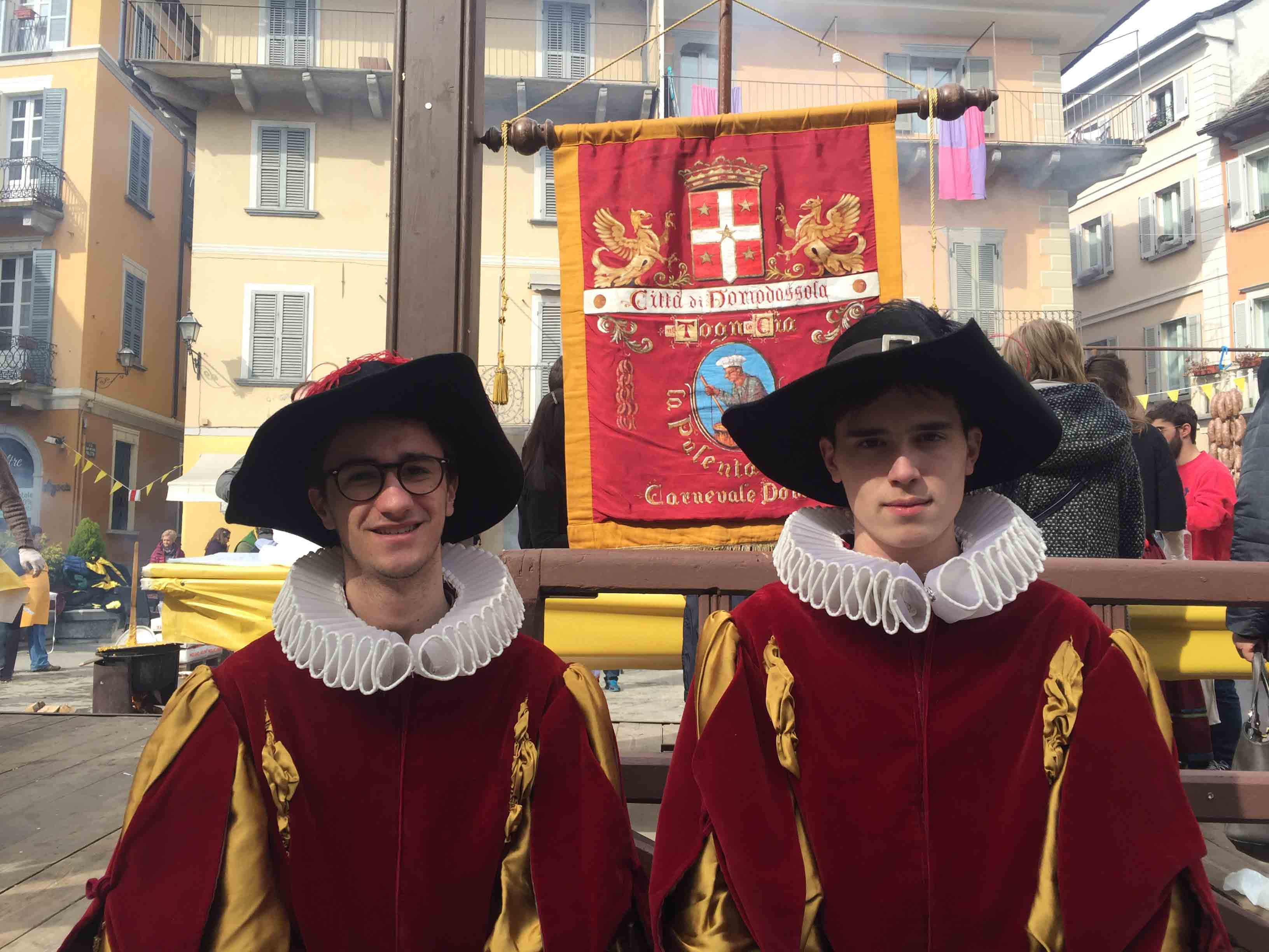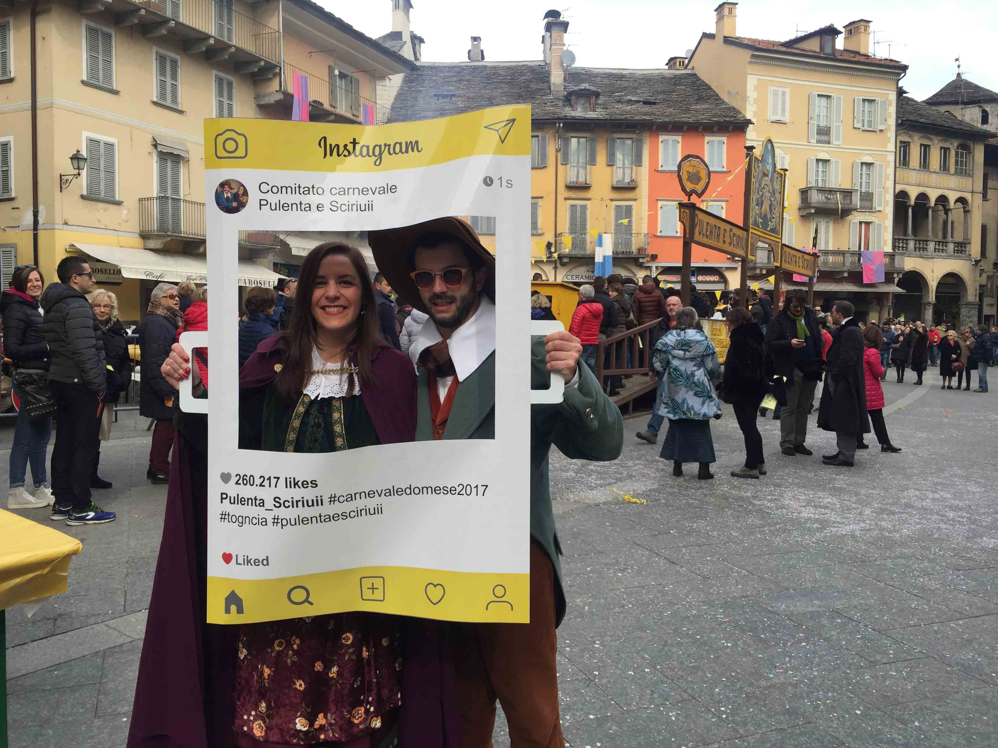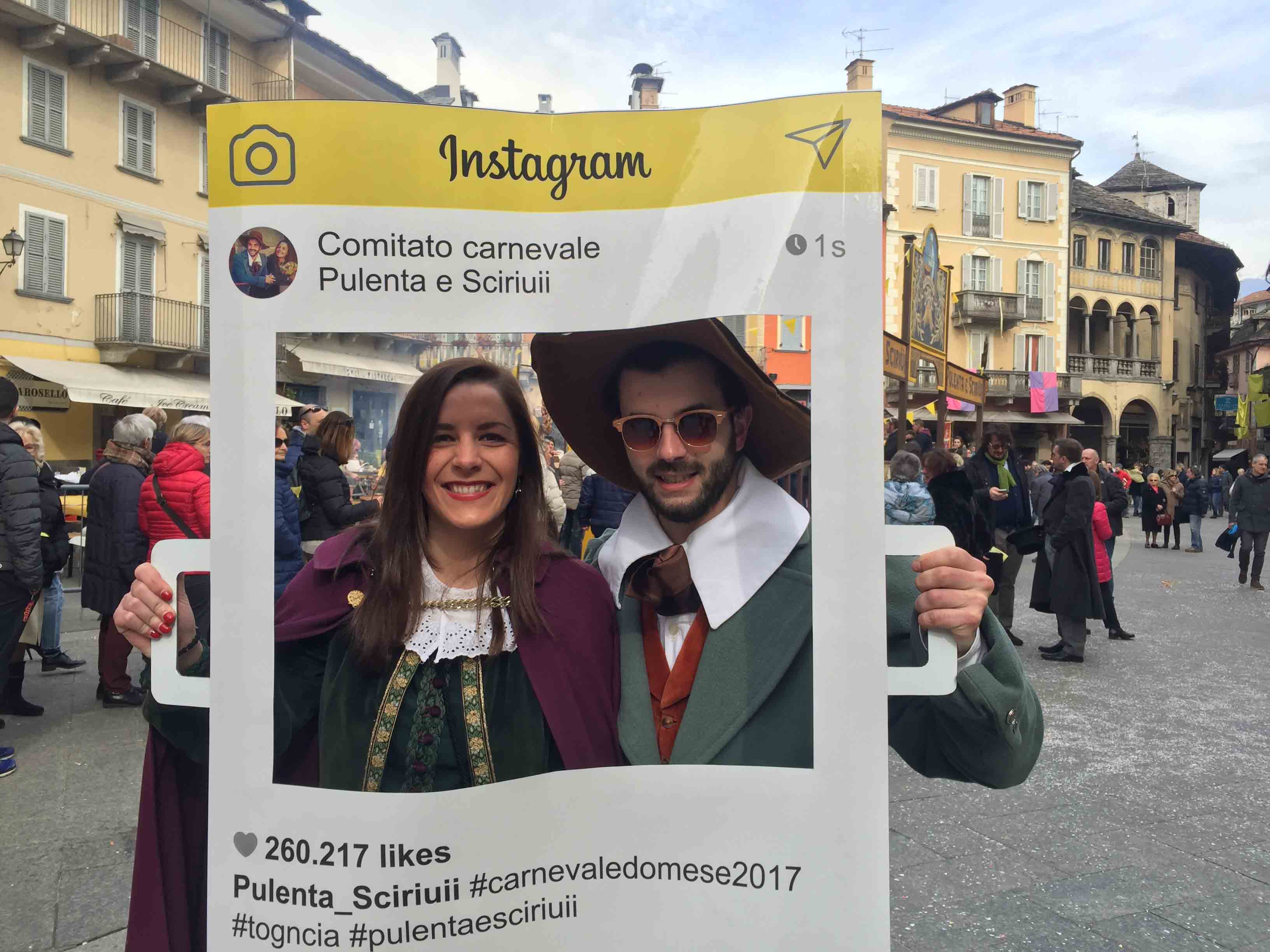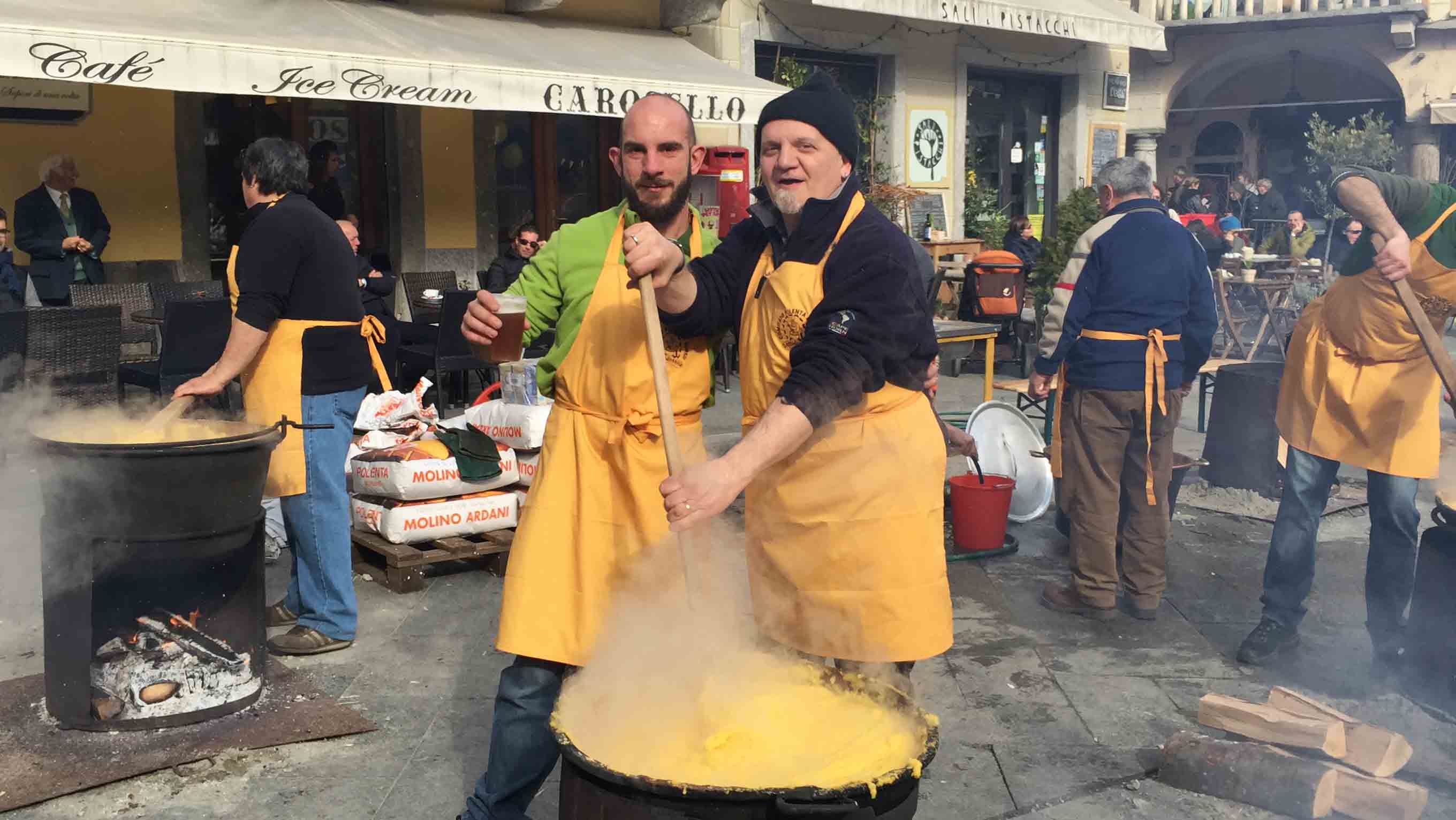 complice la calda giornata di sole, per la tradizionale distribuzione della polenta e salamini di Carnevale. In edicola è uscito il giornale satirico Il Tavan, che col motto, “Pingo ma non pungo” prende in giro i personaggi cittadini. Come da tradizione la Corte di Mattarella ha scortato il Conte e la Contessa di Carnevale, accompagnati da padrino e madrina e membri del Comitato Polenta e Sciriuii sin sotto il palco, dove la Contessa ha “assaggiato” il primo salamino per dare poi il via alla distribuzione. Immancabile la banda di Simplon Dorf, che ha allietato i presenti in coda per ritirare la polenta con le allegre melodie d'oltralpe. Dalle 14 la sfilata ed alle 16 in piazza il matrimonio di Togn e Cia.