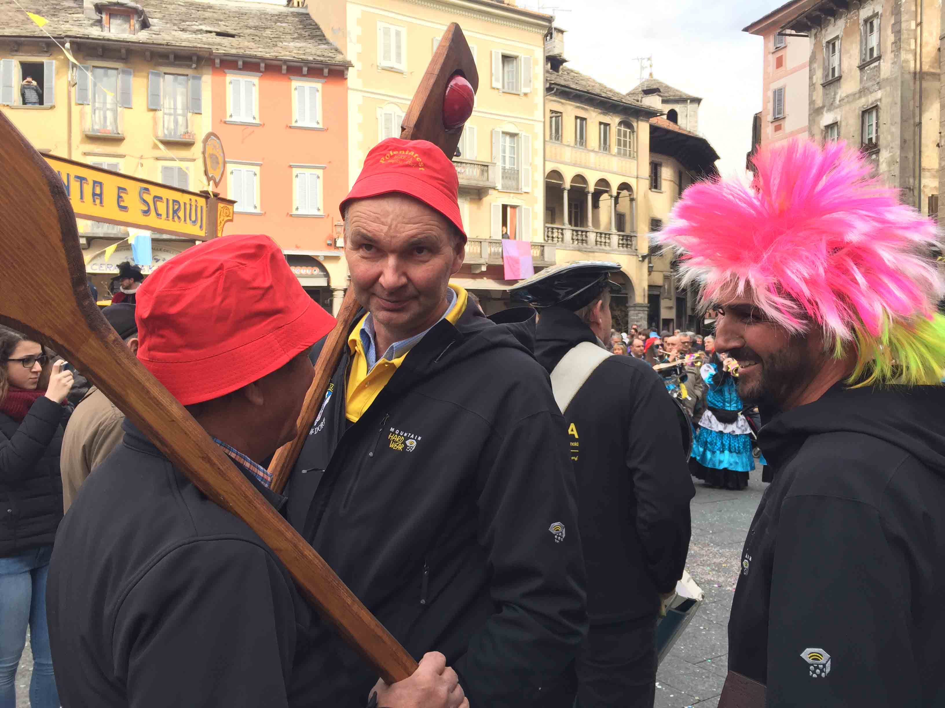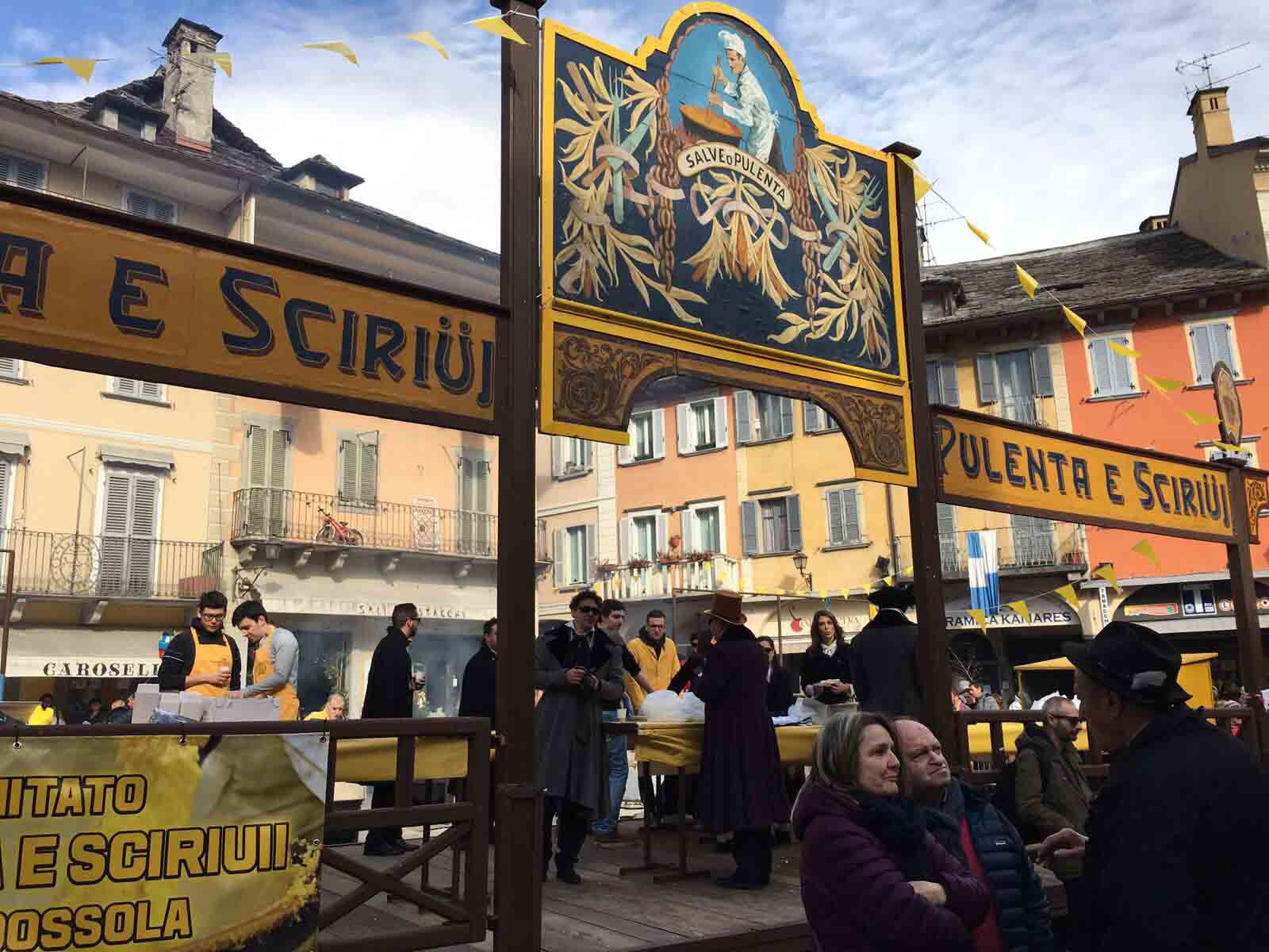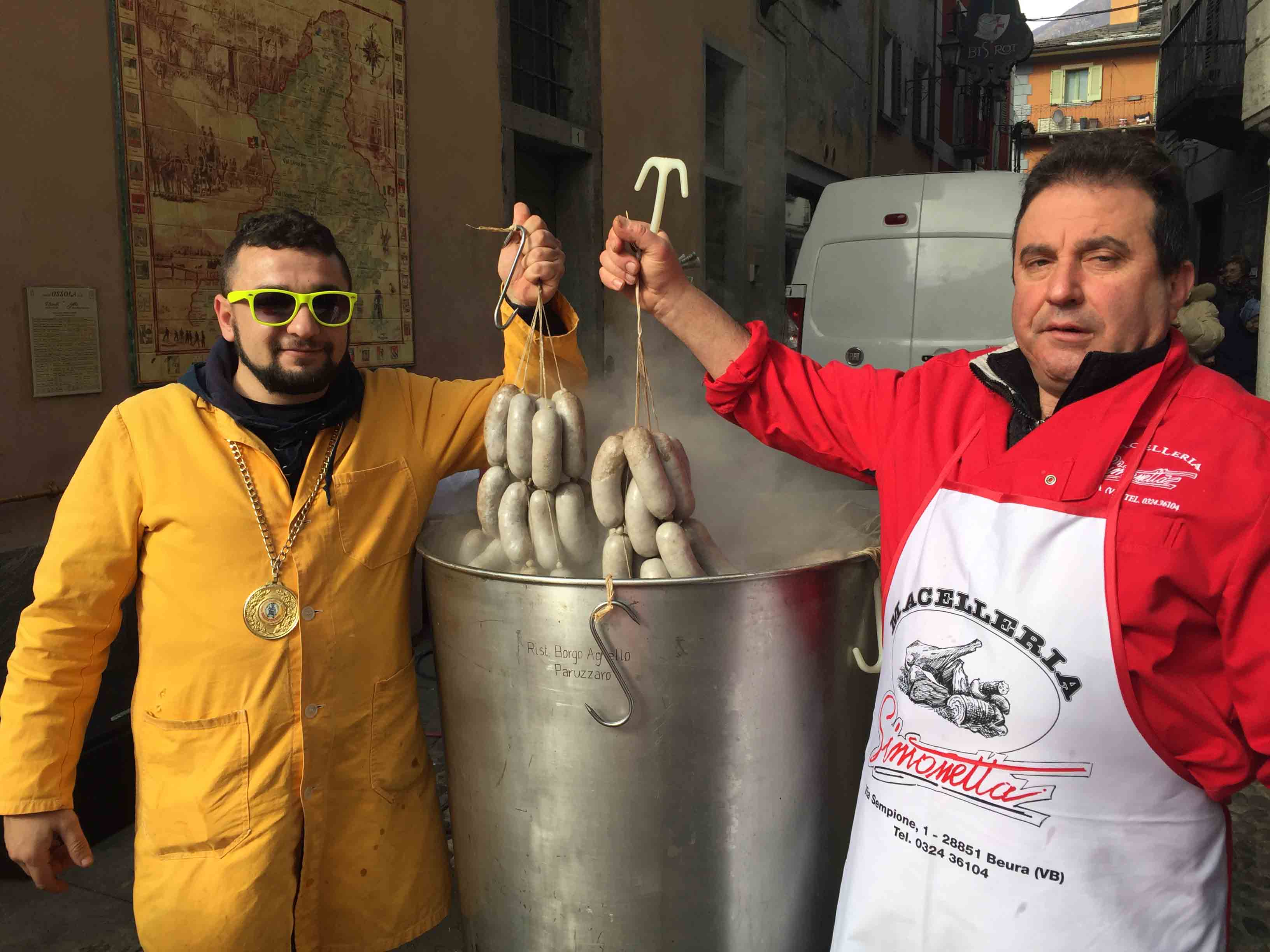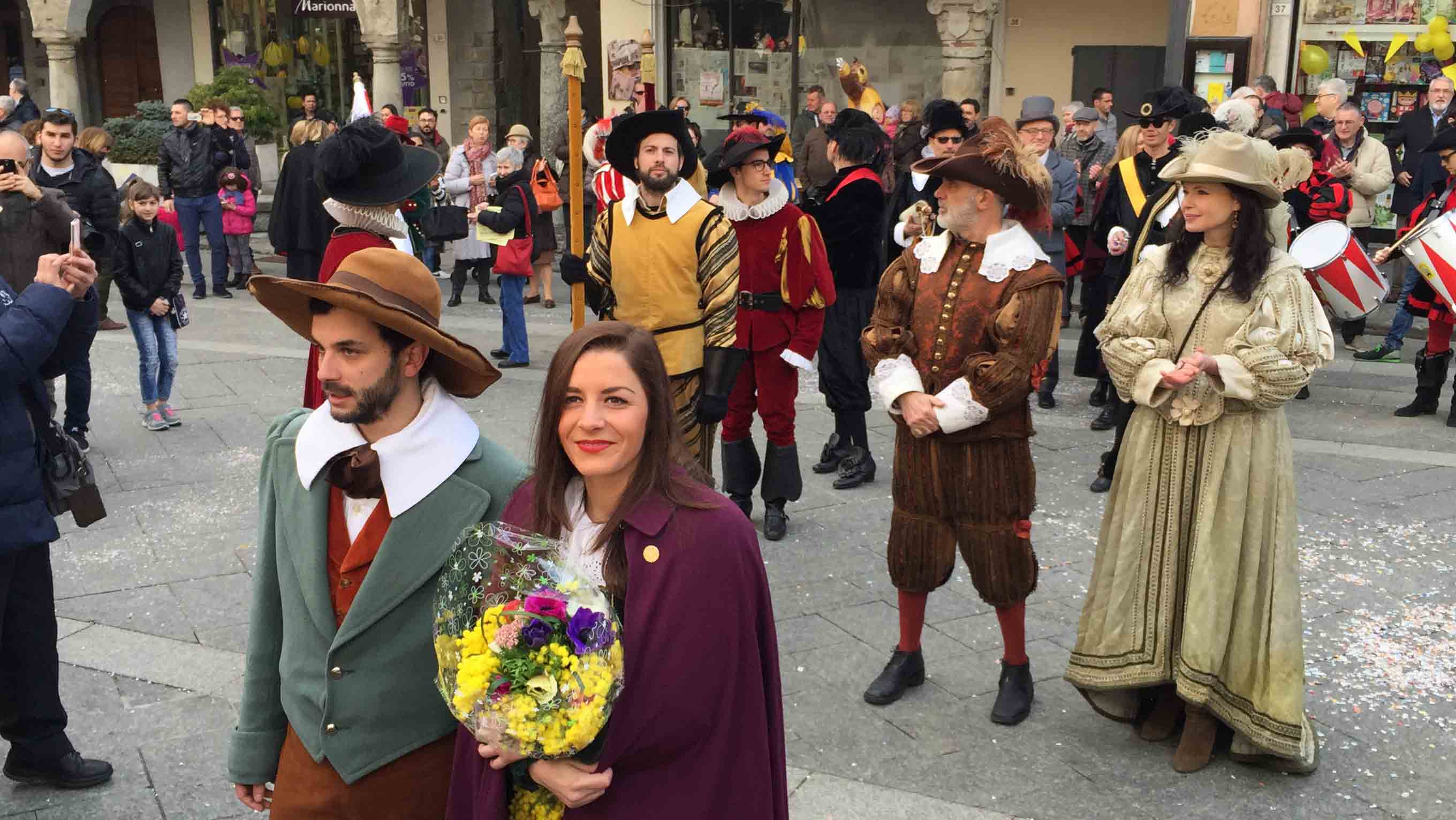 complice la calda giornata di sole, per la tradizionale distribuzione della polenta e salamini di Carnevale. In edicola è uscito il giornale satirico Il Tavan, che col motto, “Pingo ma non pungo” prende in giro i personaggi cittadini. Come da tradizione la Corte di Mattarella ha scortato il Conte e la Contessa di Carnevale, accompagnati da padrino e madrina e membri del Comitato Polenta e Sciriuii sin sotto il palco, dove la Contessa ha “assaggiato” il primo salamino per dare poi il via alla distribuzione. Immancabile la banda di Simplon Dorf, che ha allietato i presenti in coda per ritirare la polenta con le allegre melodie d'oltralpe. Dalle 14 la sfilata ed alle 16 in piazza il matrimonio di Togn e Cia.