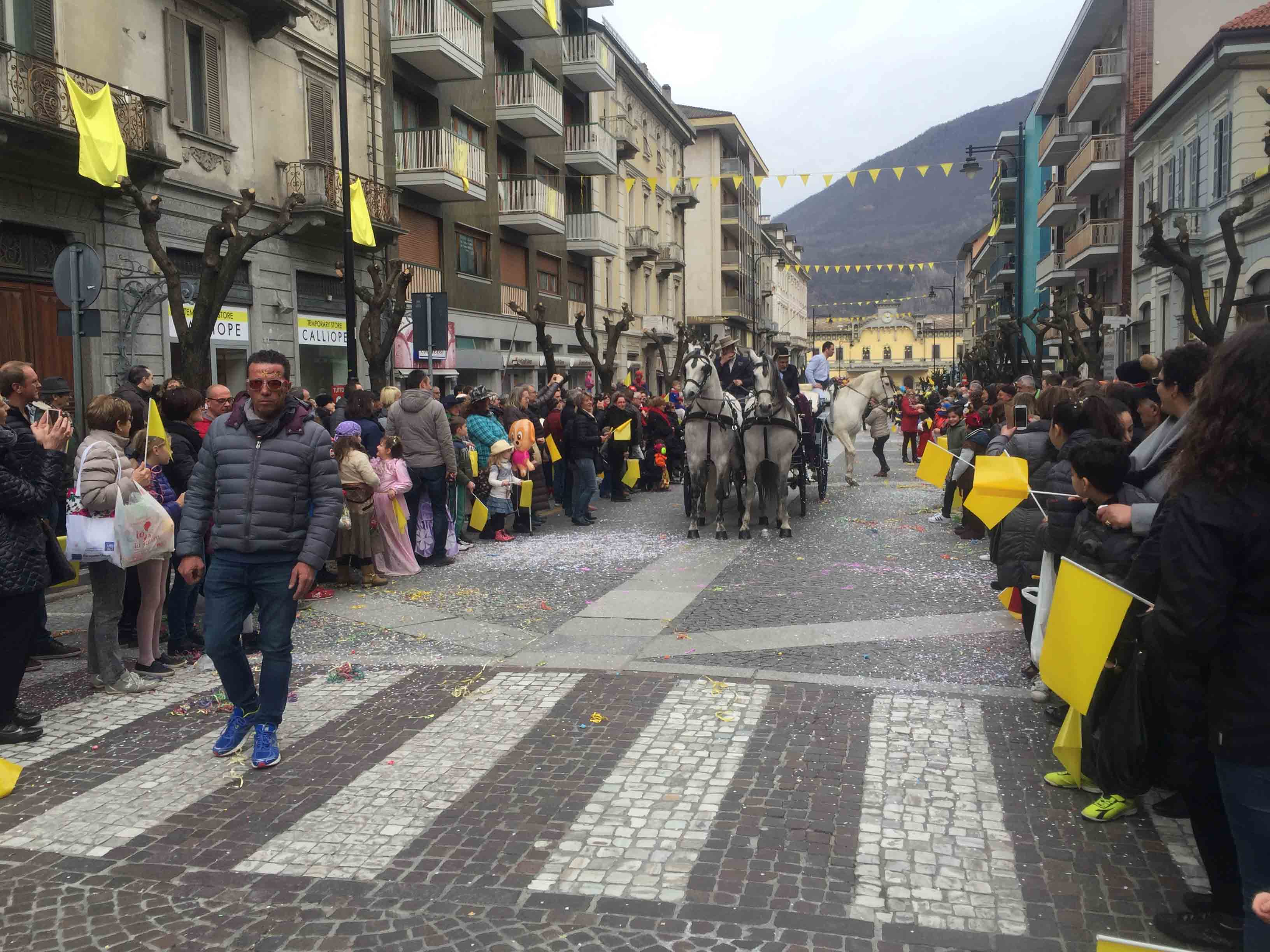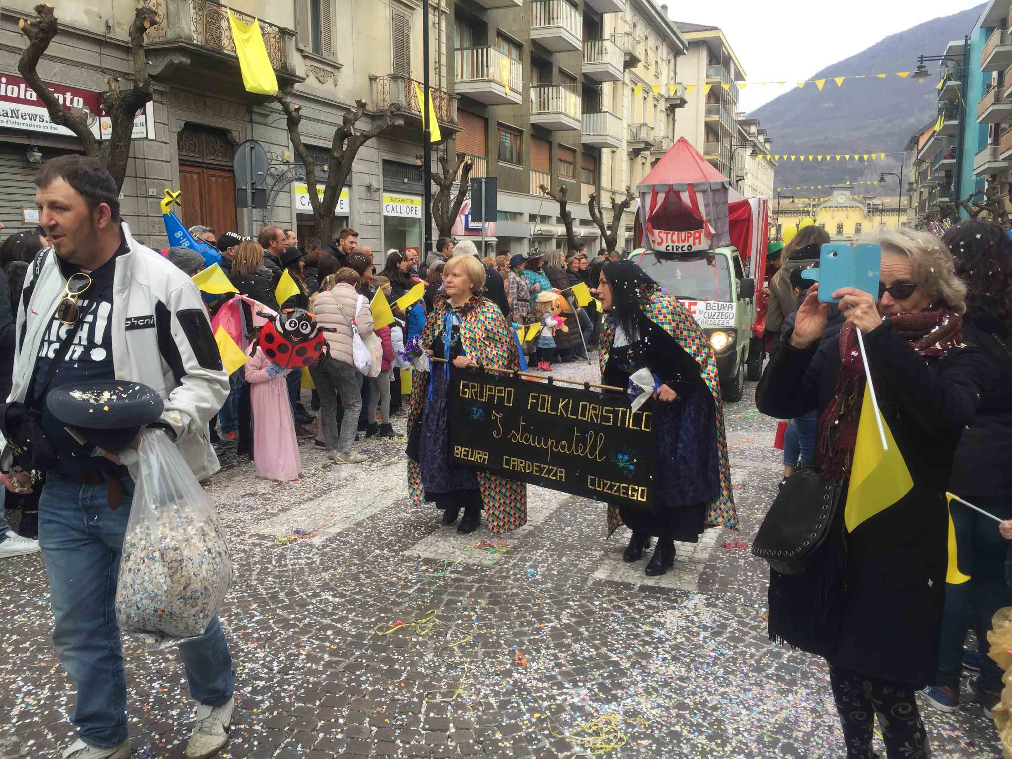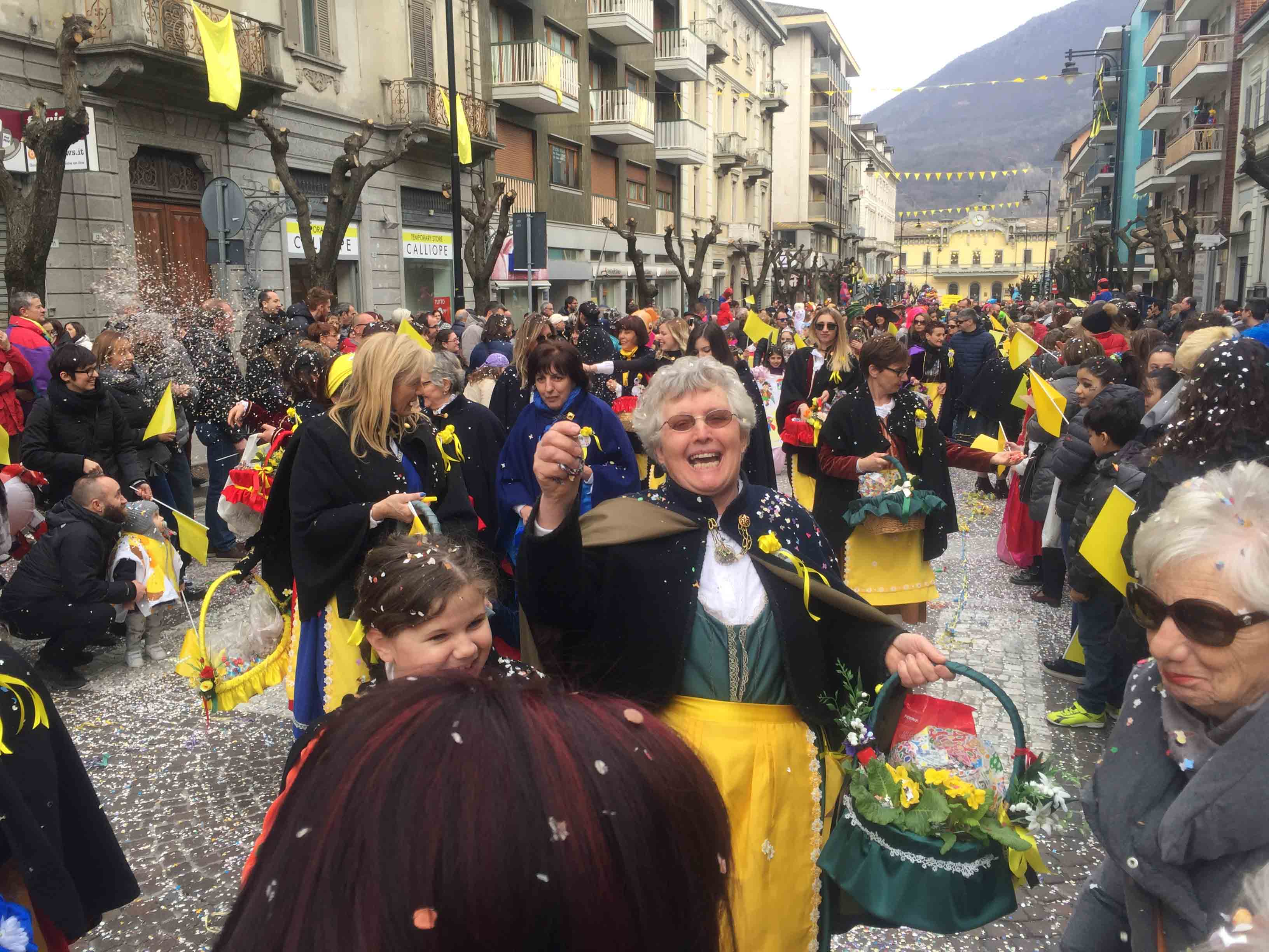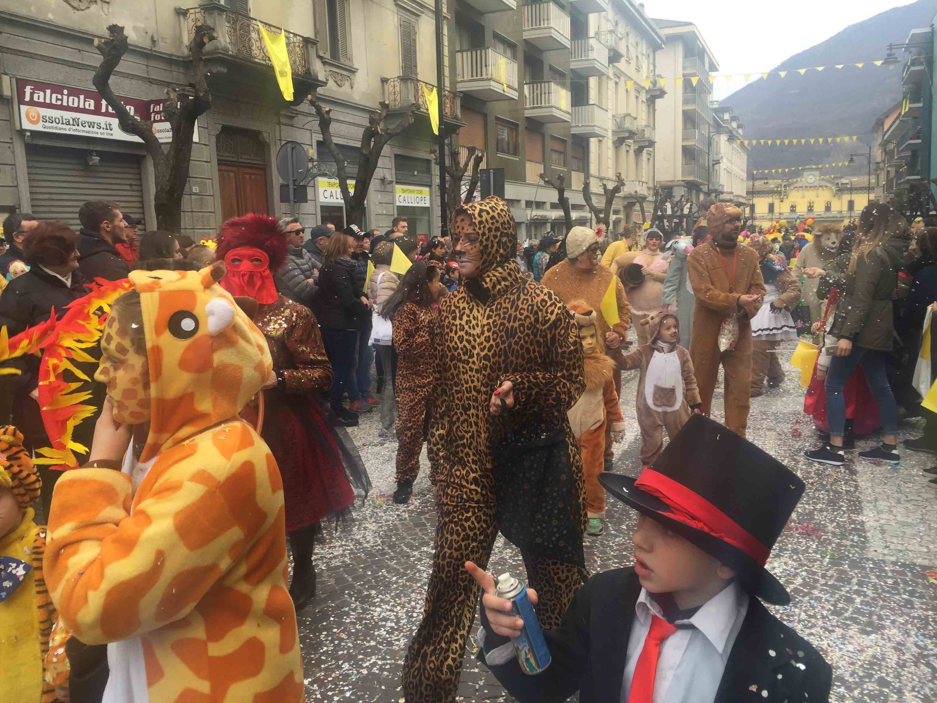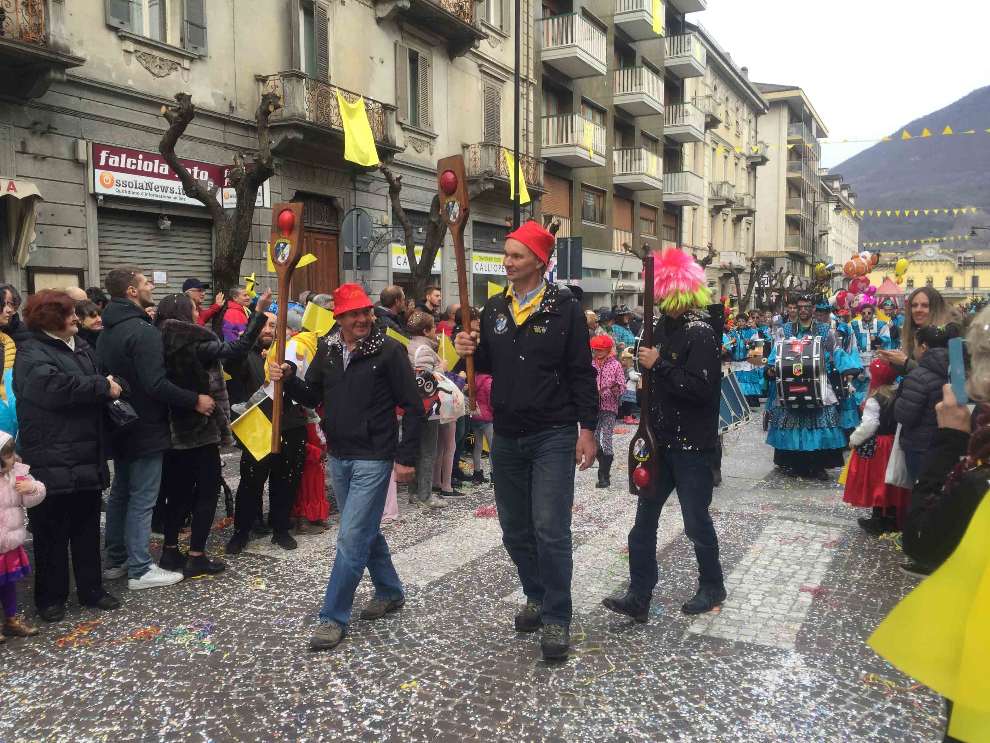 e nelle vie del centro per asistere alal sfilata di carnevale ed al matrimonio di Togn e Cia. Sin dalle ore 14 i marciapiedi sul viale della stazione si sono riempiti di gente, in attesa dell'arrivo dei gruppi folk, dei carri, della Corte di Mattarella, dei notabili del Carnevale domese, delle bande di Domo e Briga e di Togn e Cia, quest'anno su una bellissima carrozza trainata da due cavalli bianchi. La sfilata si è snodata per le vie del centro terminando in una gremitissima piazza Mercato,presente anche il sindaco Lucio Pizzi, dove sono stati applauditi tutti i partecipanti e dove poi, su un balcone di fronte al palco della polenta, si è celebrato il matrimonio tra le due maschere cittadine, Dopo il bacio di rito il discorso del Togn e poi il via con la seconda distribuzione di polenta e salamini, quest'anno da record. Il Carnevale prosegue martedì in piazza.