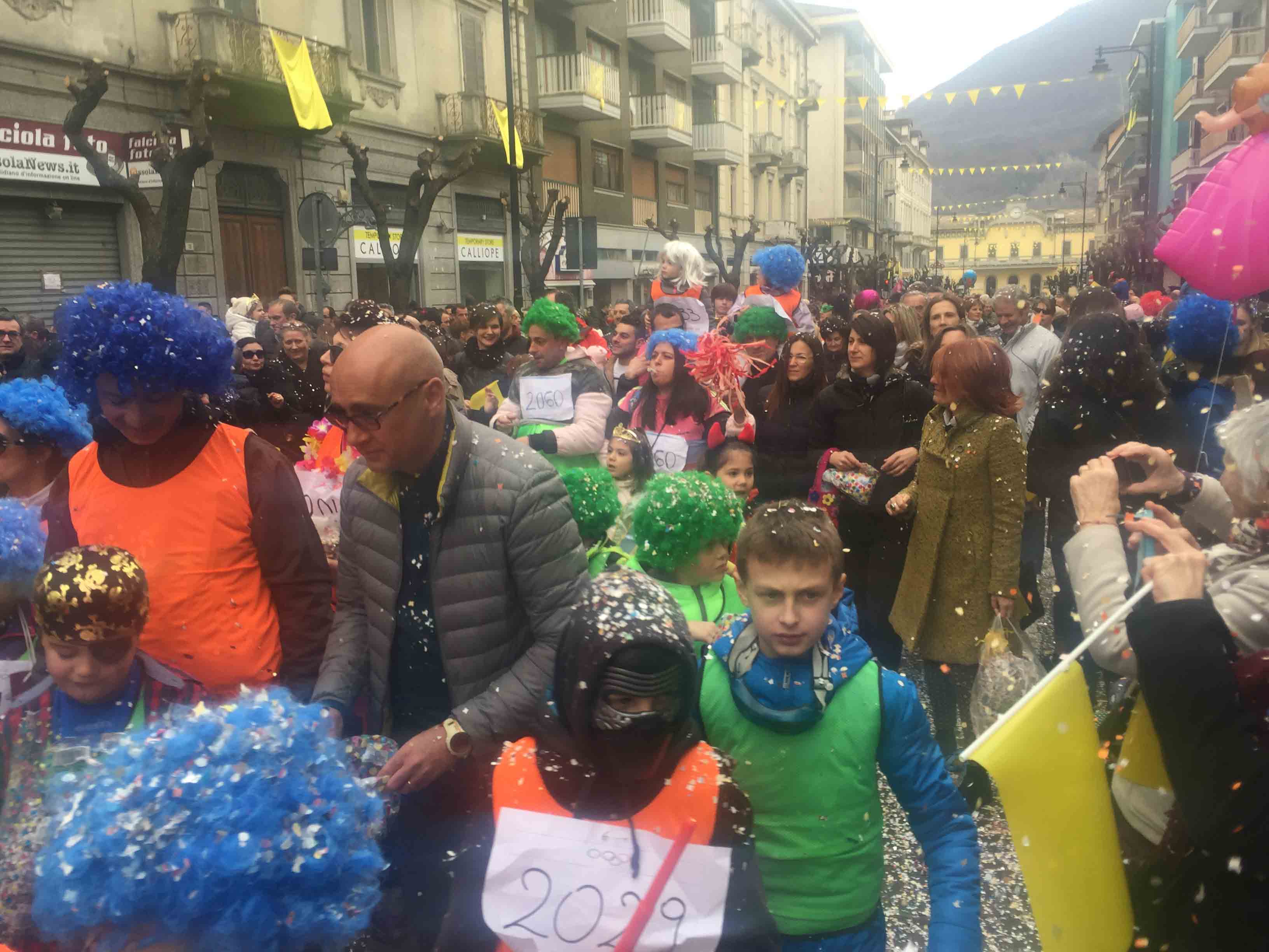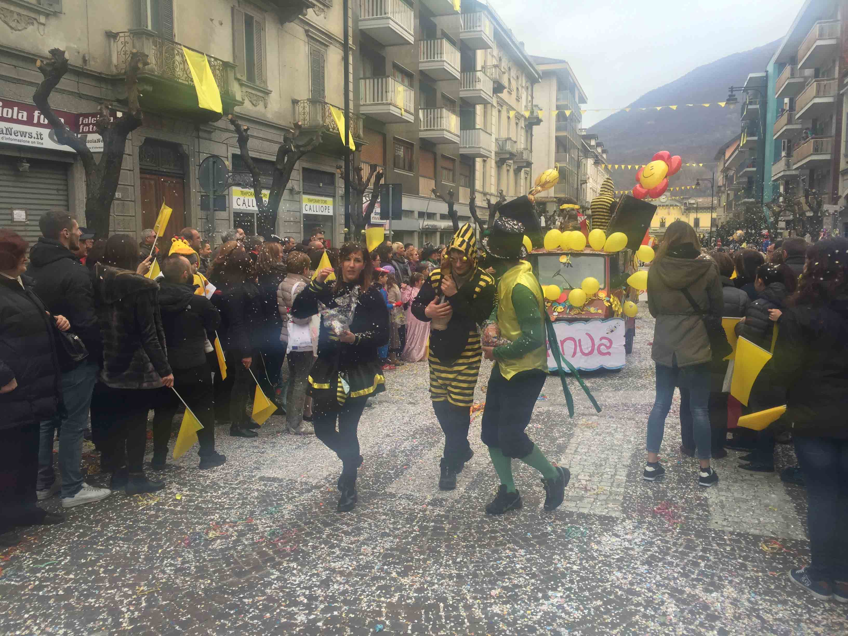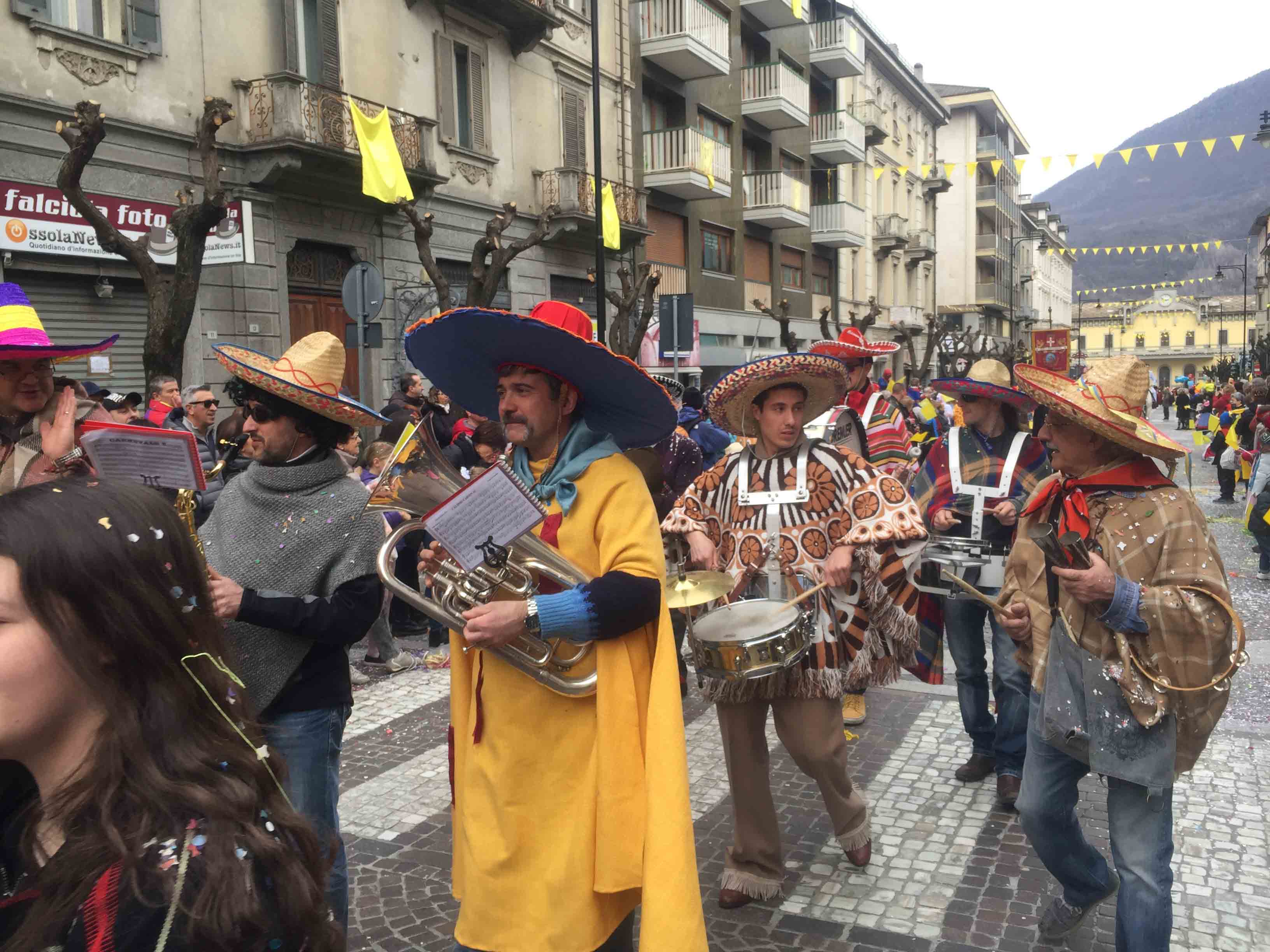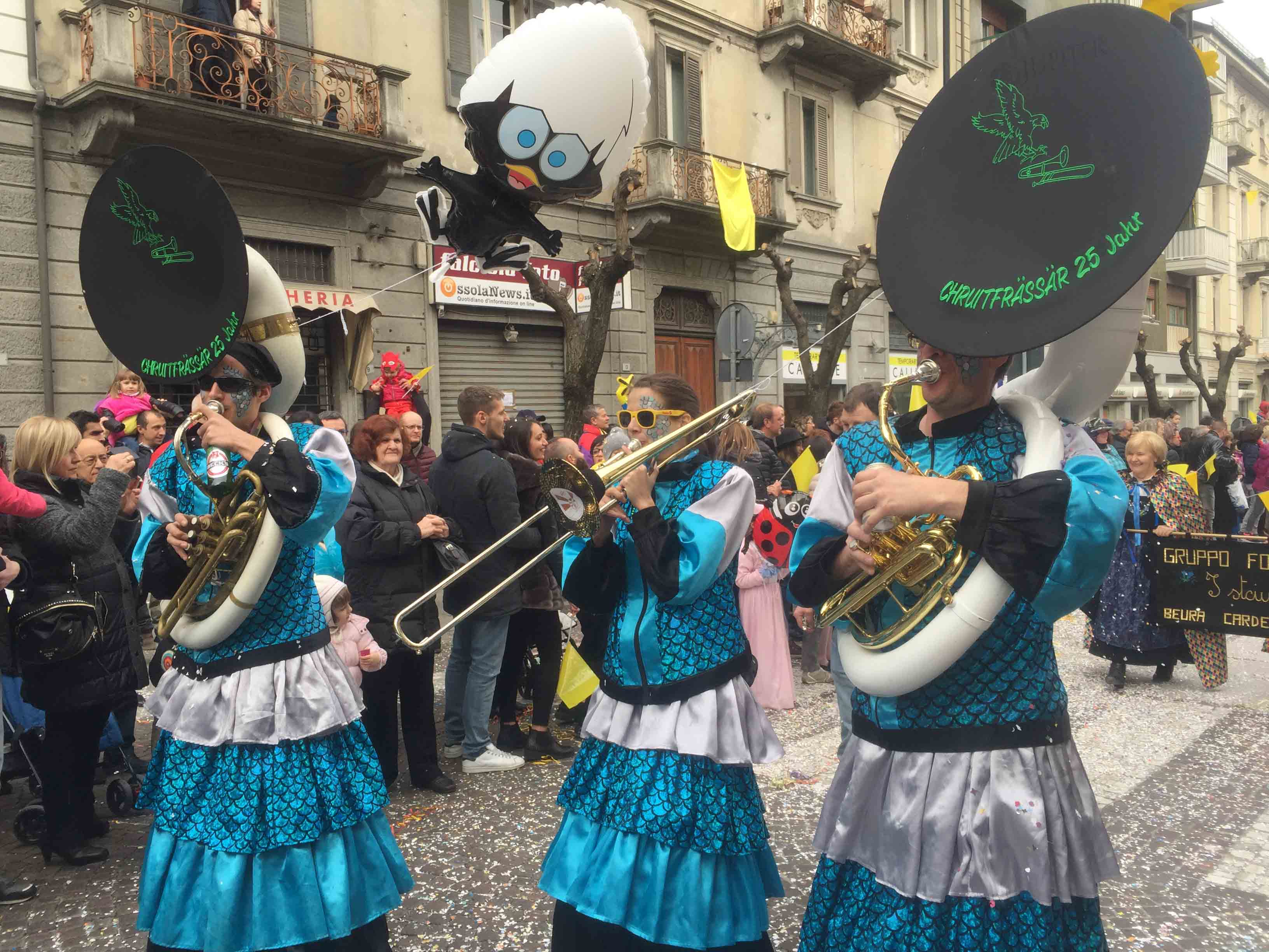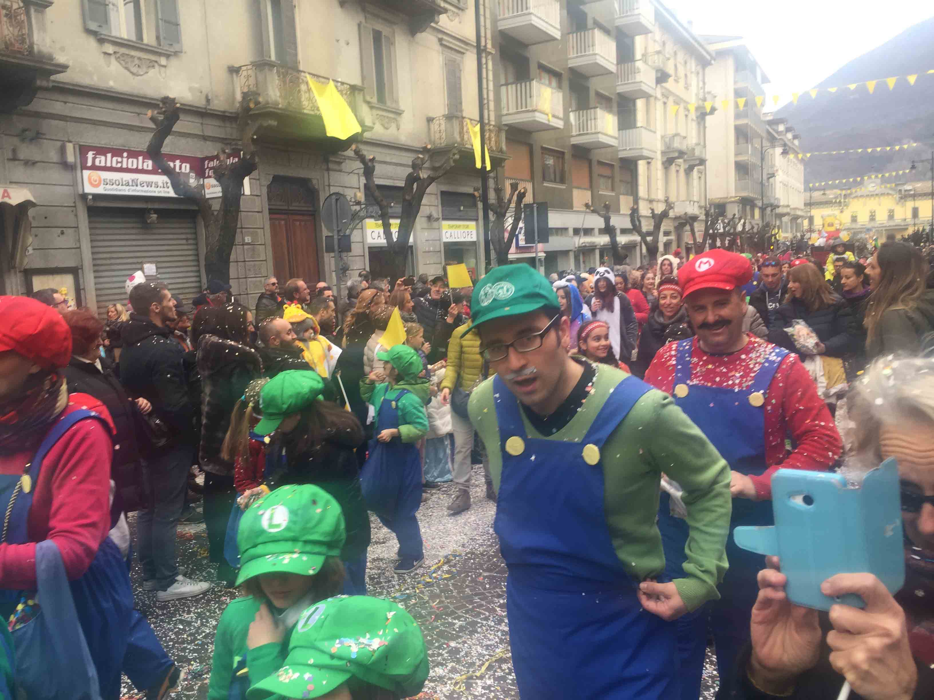 e nelle vie del centro per asistere alal sfilata di carnevale ed al matrimonio di Togn e Cia. Sin dalle ore 14 i marciapiedi sul viale della stazione si sono riempiti di gente, in attesa dell'arrivo dei gruppi folk, dei carri, della Corte di Mattarella, dei notabili del Carnevale domese, delle bande di Domo e Briga e di Togn e Cia, quest'anno su una bellissima carrozza trainata da due cavalli bianchi. La sfilata si è snodata per le vie del centro terminando in una gremitissima piazza Mercato,presente anche il sindaco Lucio Pizzi, dove sono stati applauditi tutti i partecipanti e dove poi, su un balcone di fronte al palco della polenta, si è celebrato il matrimonio tra le due maschere cittadine, Dopo il bacio di rito il discorso del Togn e poi il via con la seconda distribuzione di polenta e salamini, quest'anno da record. Il Carnevale prosegue martedì in piazza.