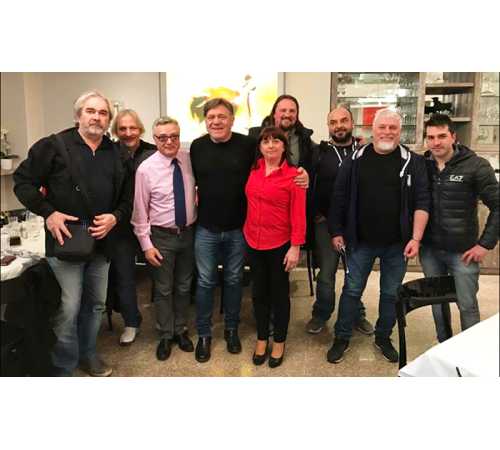 DOMODOSSOLA- 02-03-2017- Sono già arrivati in Ossola i Nomadi, che venerdì sera al Trocadero faranno un concerto insieme a Salvatore Ranier per festeggiare i 19 anni di storia musicale del Cantante della solidarietà, giovedì sera hanno cenato al ristorante Plaza De Toro, ospiti del proprietario Alfredo Parrelli: “Sicuramente sarà una grande serata- spiega Beppe Carletti, tastierista e cofondatore della band 54 anni fa- non solo per i Nomadi, ma per salvatore Ranieri, venite anche per lui. Sceglieremo le canzoni che pensiamo siano più gradite dal pubblico, non solo le più conosciute, ma anche quelle che vogliamo fare conoscere meglio. Cercheremo di accontentare tutti. I Nomadi sono conosciuti per “io vagabondo”, ma negli ultimi anni abbiamo pensato di cantare anche canzoni che abbiano un senso, che possano arrivare al cuore della gente”. “Parte del ricavato della serata- spiega Salvatore Ranieri- sarà destinato all'acquisto di carrozzine per anziani e disabili”. Appuntamento alle 21 al Trocadero, anche per assistere al debutto della nuova “voce” dei Nomadi, Yuri Cilloni.