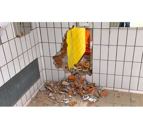 I soliti “ignoti” sono entrati nella struttura rompendo un vetro del locale cucina. Poi sapendo della presenza dei sensori per non essere intercettati hanno rotto un muro (nella foto) per scappare. Ingenti i danni ma magrissimo il bottino; solo delle monetine. Non è la prima volta che dei malintenzionati si introducono nella struttura, dotata di sistema di videosorveglianza.