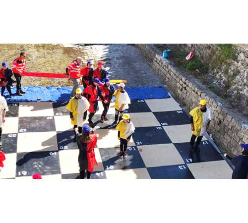 VARZO- 24-04-2017- Organizzata dal gruppo teatrale Varzese, ha fatto da cornice agli avvenimenti che hanno preceduto il Palio degli Asini di Varzo una originalissima dama umana. Le persone si muovevano sulla scacchiera come le pedine e chi veniva "mangiato" veniva portato fuori dal gioco da due volontari dell' ambulanza di Varzo. Per la cronaca la partita giocata da Franco Chiodini e Fabrizio Bianchi è finita in parità. Il gruppo teatrale è molto attivo durante tutto l'anno ed è ormai famoso per le sue rappresentazioni umane, su tutte il Presepe Vivente Meccanico, che nel periodo natalizio anima il centro del paese e che negli ultimi anni ha avuto un grande successo in altri centri dell' Ossola.