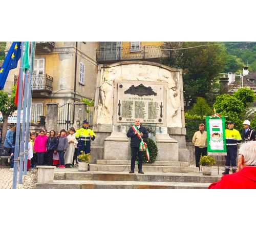 VOGOGNA- 26-04-2017- Festa della Liberazione anche a Vogogna, con commemorazione ufficiale fatte dal sindaco, ed onorevole, Enrico Borghi. La giornata si è aperta nella frazione di Prata, dove una delegazione di amministratori comunali, insieme con la Protezione Civile, il gruppo Alpini di Vogogna e le "donne del Parco Valgrande" e cittadini ha reso omaggio al monumento ai caduti: "Di seguito- spiegano dal Comune- nel capoluogo vogognese si è tenuta la commemorazione ufficiale, con la messa in ricordo dei caduti officiata dal parroco don Paolo Pessina e a seguire -presso il monumento che ricorda i morti di Vogogna in tutte le guerre- il canto dell'inno nazionale e la cerimonia del "presente" che ha visto protagonisti i bambini dell'Istituto Scolastico "Valtoce".
