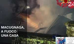 Incendio a Macugnaga, le fiamme avvolgono il tetto di una abitazione